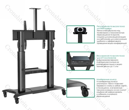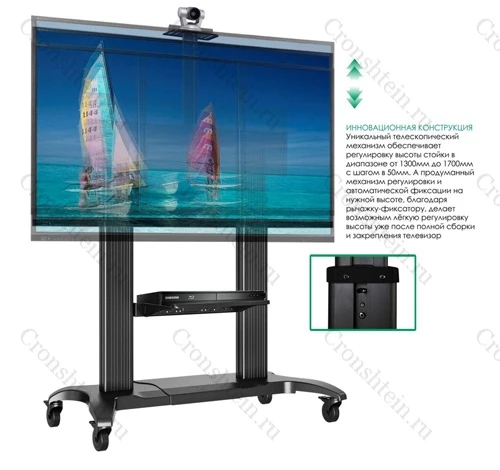 Металлическая полка над телевизором, с возможностью перемещения по высоте, создана для размещения видео или веб-камер для максимально удобного и эффективного проведения видео конференций.
