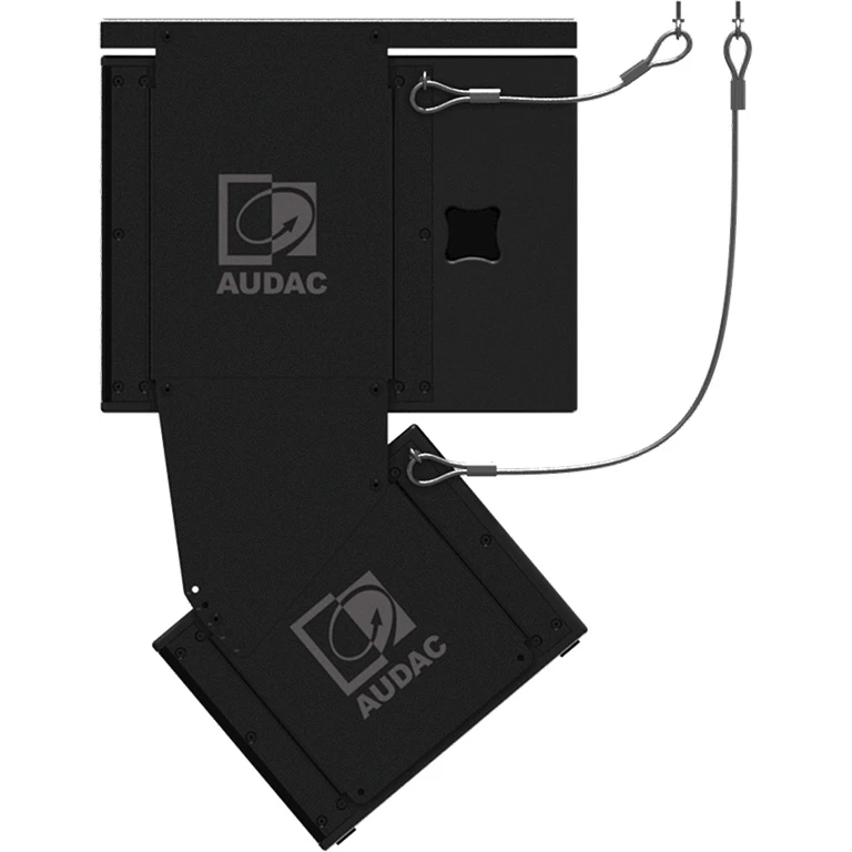Монтажный комплект для установки акустических систем FX3.15 и FX1.18, регулируемый угол взаимного положения в диапазоне 20° - 60° со страховочными тросами. Оцинкованная сталь 3 мм, цвет черный.