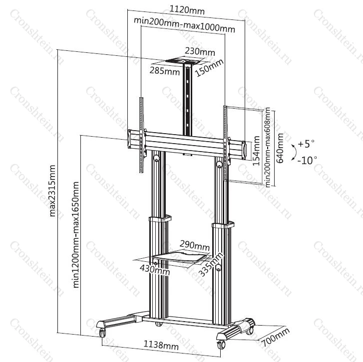 • Регулировка по высоте: 1200-1650 мм (шаг 50 мм)