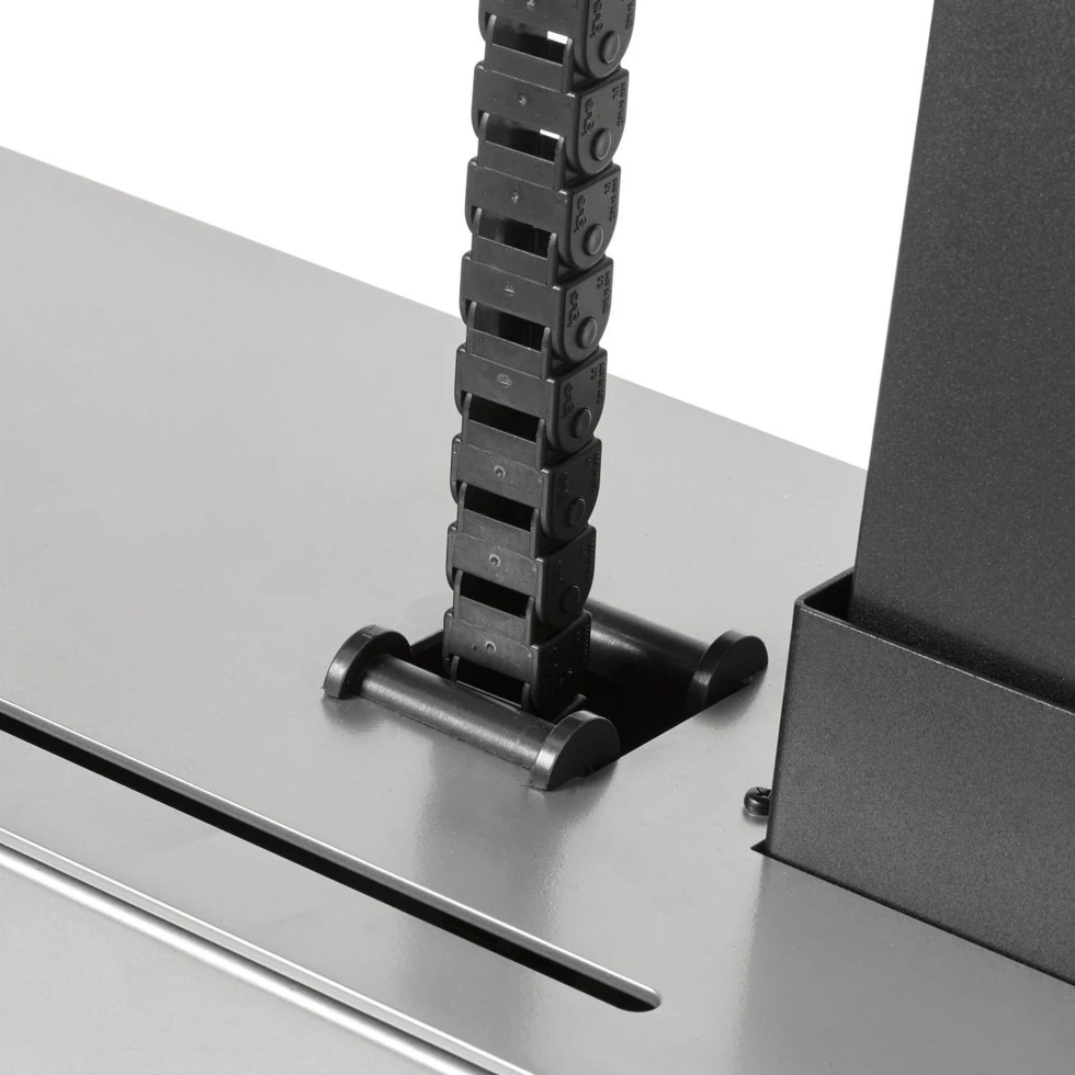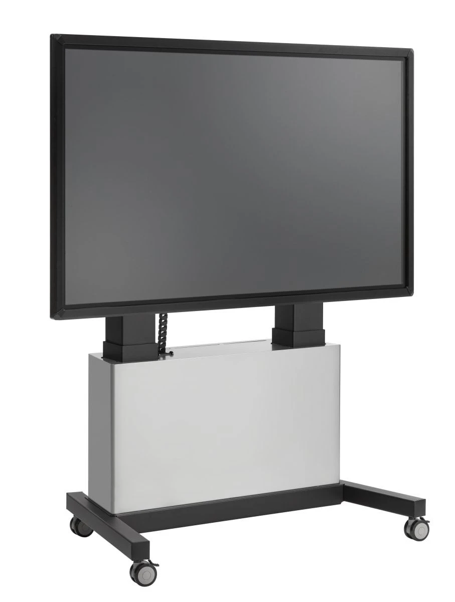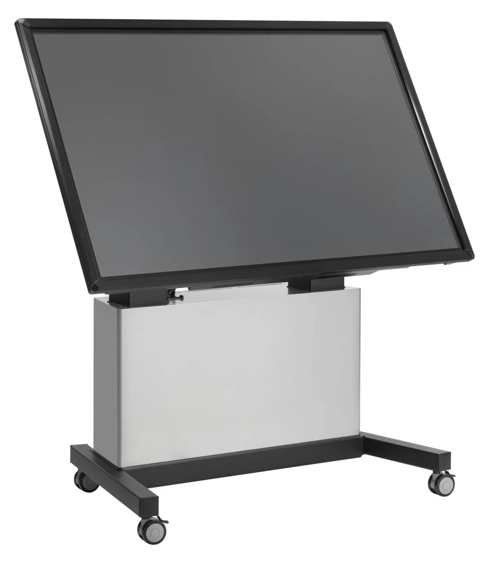 Моторизированный мобильный сенсорный стол Vogels PFTE 7121. арт 8656 для дисплея диагональю 42-85''. Стол снабжен ящиком для AV-оборудования и кабельным каналом, для предотвращения попадания проводов в мотор устройства. В основании стола находится усиленная колесная база с 2-я парами колес, и 4-я стопорами. Регулировка высоты дисплея обеспечивается двумя синхронизированными моторами. В комплекте идет проводной пульт управления (длина кабеля: 150 см). Диапазон регулировки высоты до 500 мм. Расстояние от пола до центра дисплея: 800-1300 мм. Наклон дисплея: 0-90С. Максимальная нагрузка: 160 кг. Стандарт VESA: 200x200-700x400. Цвет:черный с серебристым.