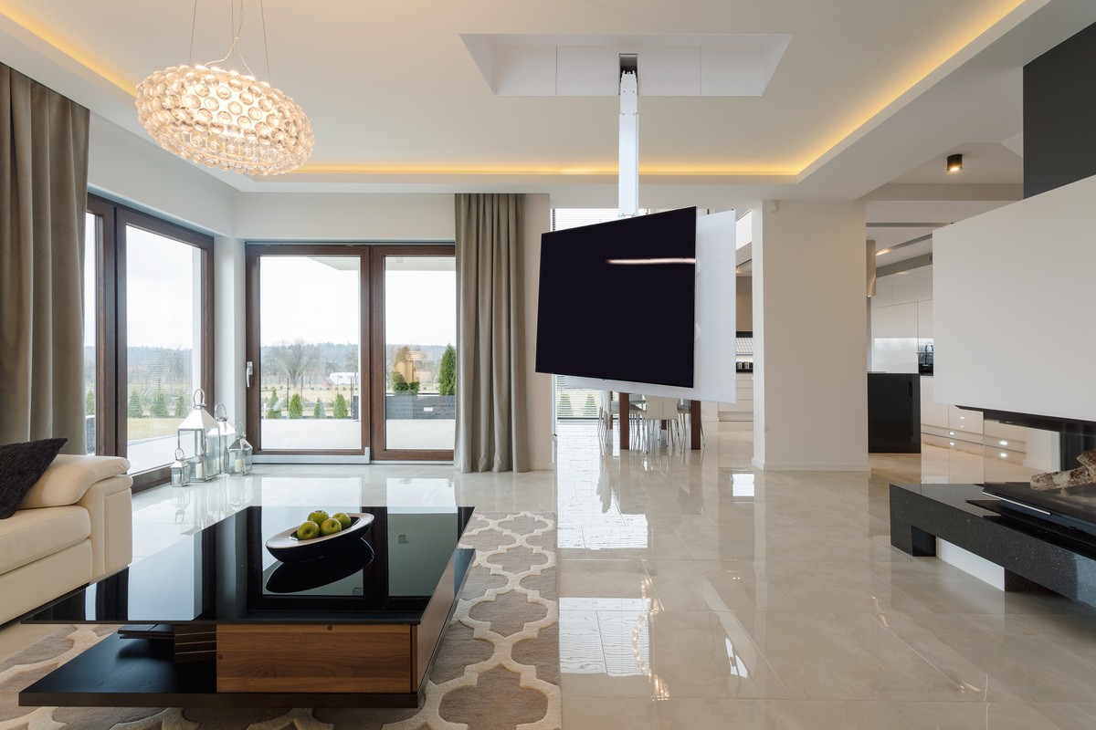 Единственный потолочный лифт для телевизоров диагональю от 60 до 75 дюймов. Управление при помощи пульта дистанционного управления, кнопок и систем типа умный дом через ИК приемник.Не большая толщина механизма, всего 11 см, значительно упрощает установку. Этот лифт можно разместить как внутри дома,так и снаружи,также он отлично подойдёт для яхты или автобуса.