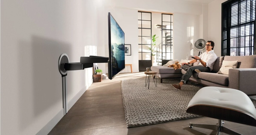Vogels MotionMount NEXT 7356 – гибкий кронштейн для OLED телевизора, обеспечивающий максимальное удобство использования. Моторизированный кронштейн автоматически поворачивает телевизор в зависимости от вашего местонахождения в комнате, с максимальным углом поворота 120 градусов влево и вправо. Как только вы включаете телевизор, кронштейн плавно разворачивает его в запрограммированное вами положение. Сразу после выключения кронштейн Vogels MotionMount NEXT 7356 бесшумно возвращается в стационарное положение на стене. Никакой отдельный пульт управления не нужен.
