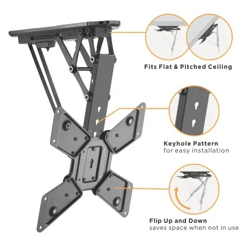 С этим кронштейном вы можете создать эффектное переключение между просмотром телевизора в разных углах комнаты или различных помещений. Моторизованный механизм позволяет поворачивать телевизор горизонтально на 360 градусов и вертикально на 15 градусов для идеального угла обзора. Вы также можете легко регулировать высоту телевизора для достижения оптимального положения.