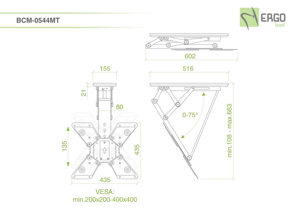 Моторизованный потолочный лифт ErgoFount BCM-0544MT. арт 7527 для дисплеев 23-55 до 30 кг. VESA до 400x400. Наклон 0-75°, тонкая юстировка ±3°. Запатентованный механизм с ИК-пультом. Прочность конструкции протестирована с троекратным превышением заявленной грузоподъемности.