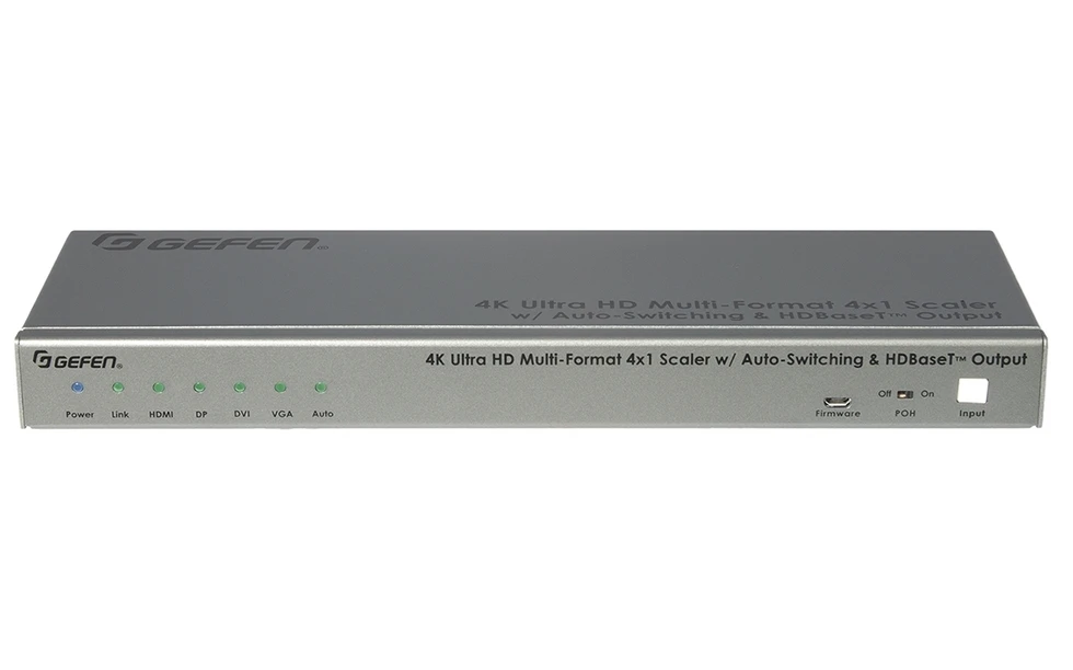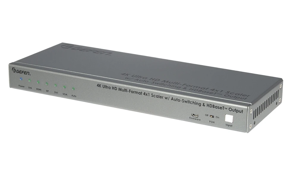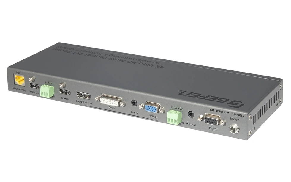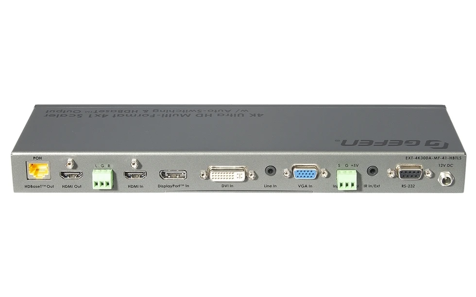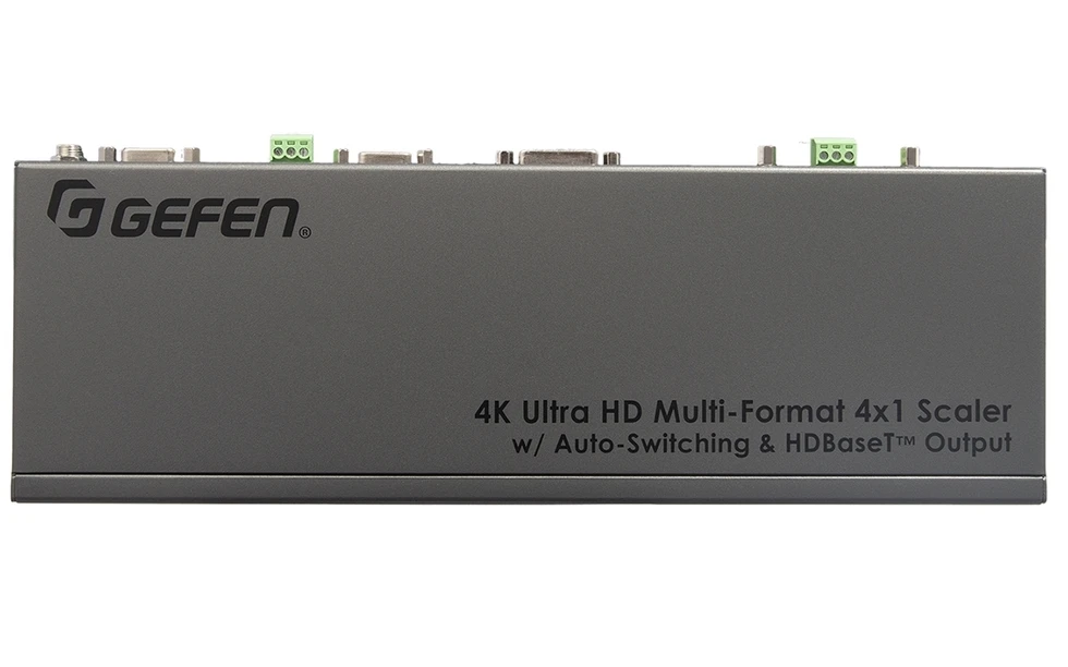 Мультиформатный процессор и автокоммутатор сигналов VGA, DVI, HDMI, DisplayPort 1.1, аудио (2х miniJack 3,5 мм) и S/PDIF (RCA, TOSLINK) в сигналы HDBaseT с PoH и HDMI 4096x2160/60 (4:2:0) с HDCP 1.4, 2.2, EDID и CEC, аудио (Phoenix), управление по ИК, RS-232 и «сухие» контакты. Дальность 1080p – 70 м, 4K – 40 м. Совместимый приемник: EXT-UHDA-HBTL-RX.