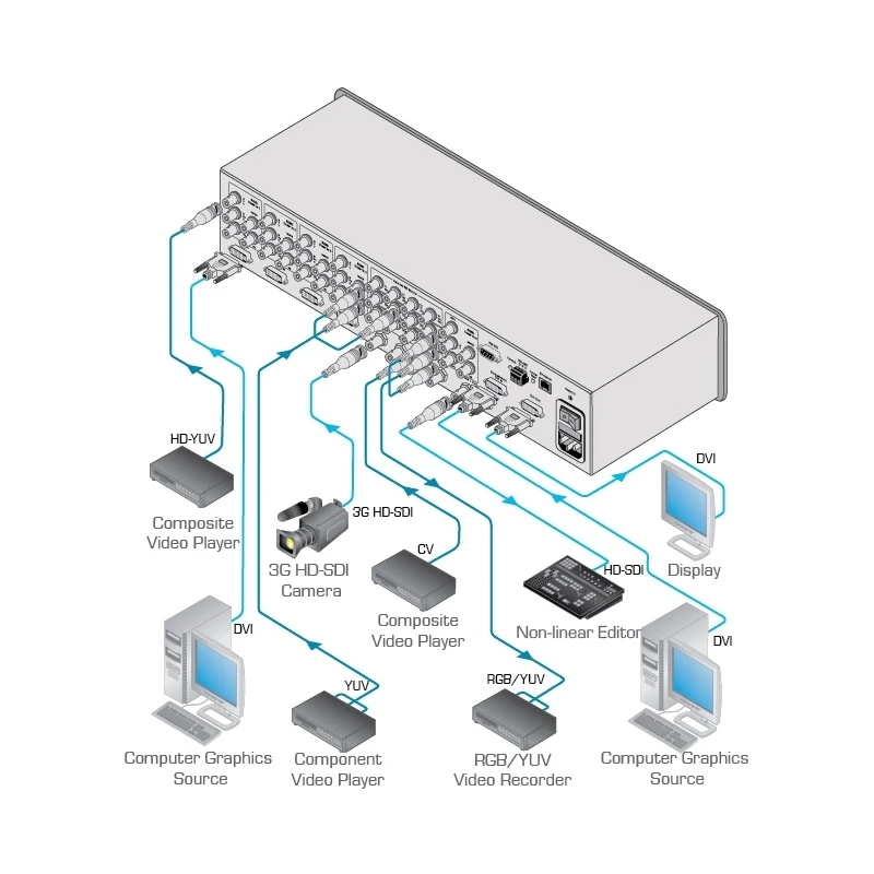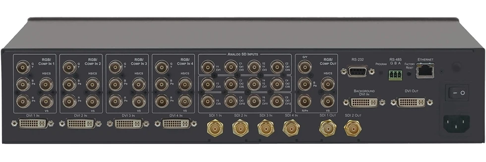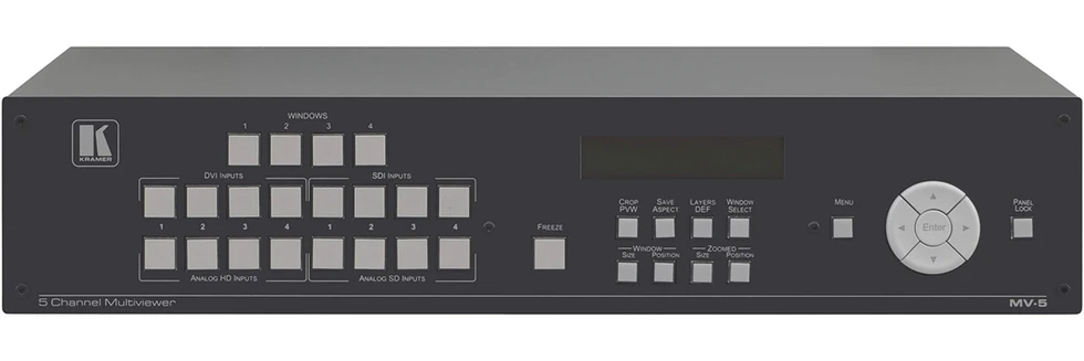Мультиоконный масштабатор 5 каналов RGBHV / CV / DVI-D / 3G HD-SDI в RGBHV / DVI-D / 3G HD-SDI.