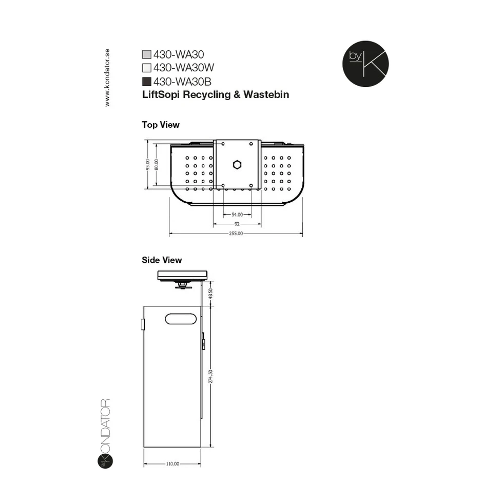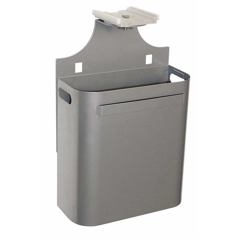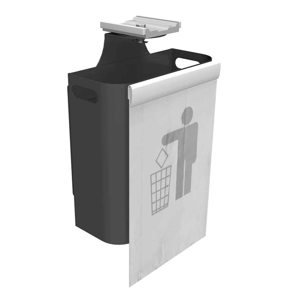 Мусорное ведро с кронштейном для крепления под столом. Вращение: 360°. Объем: 7 л. Регулировка расстояния от стола. Опция: направляющие рельсы LiftSystem 430-WA1x для горизонтального скольжения. В комплекте: 25 пакетов для мусора Sopi. Габаритные размеры (ШxГxВ): 255х110х323 мм. Цвет серебристый.
