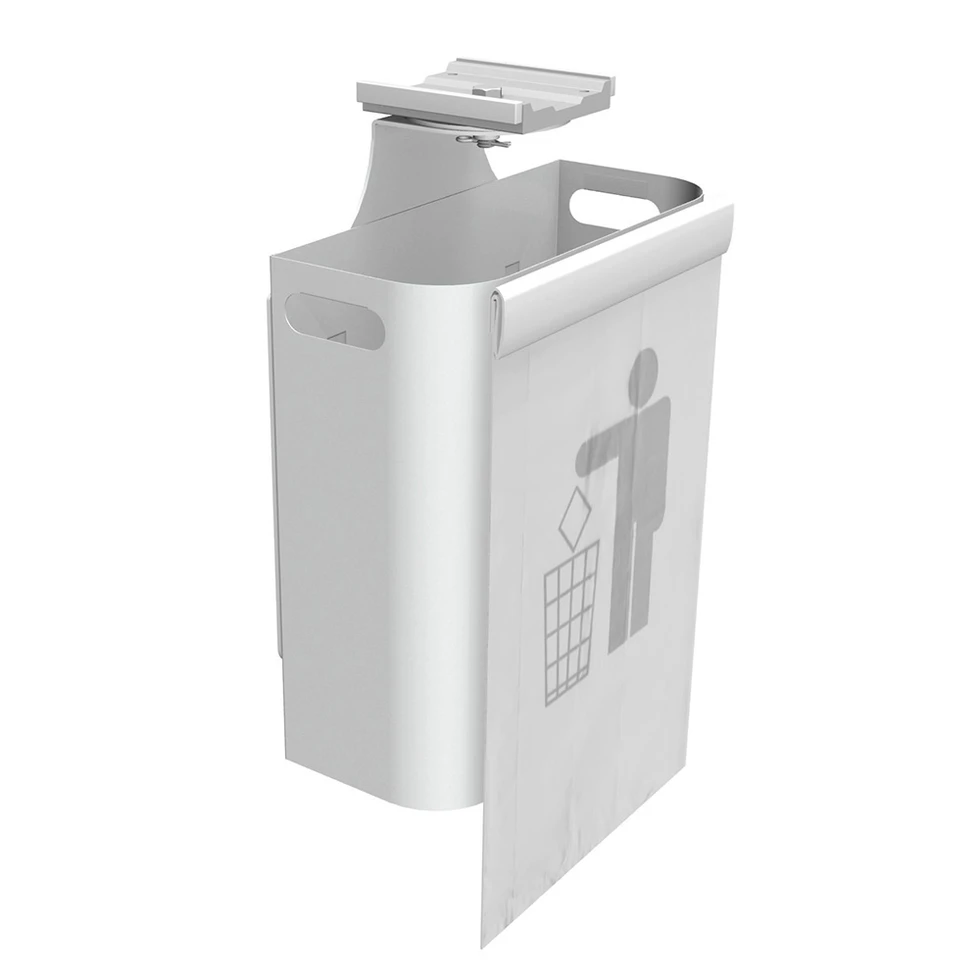 Мусорное ведро с кронштейном для крепления под столом. Вращение: 360°. Объем: 7 л. Регулировка расстояния от стола. Опция: направляющие рельсы LiftSystem 430-WA1x для горизонтального скольжения. В комплекте: 25 пакетов для мусора Sopi. Габаритные размеры (ШxГxВ): 255х110х323 мм. Цвет белый.