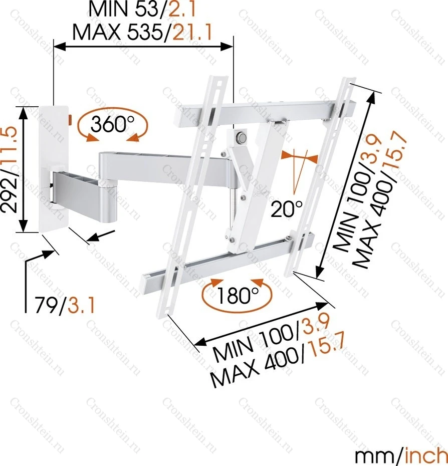 Наклонно-поворотный (нога) кронштейн для телевизора на стену Vogel's WALL2245. Кронштейн позволяет вращать телевизор в любых направлениях, а также вешать телевизор на угол.