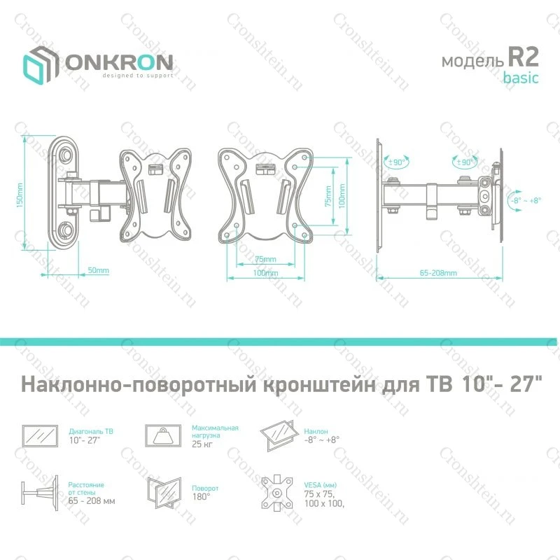 Функциональные возможности кронштейн Onkron Basic R2. арт.8281: