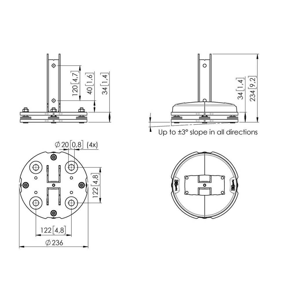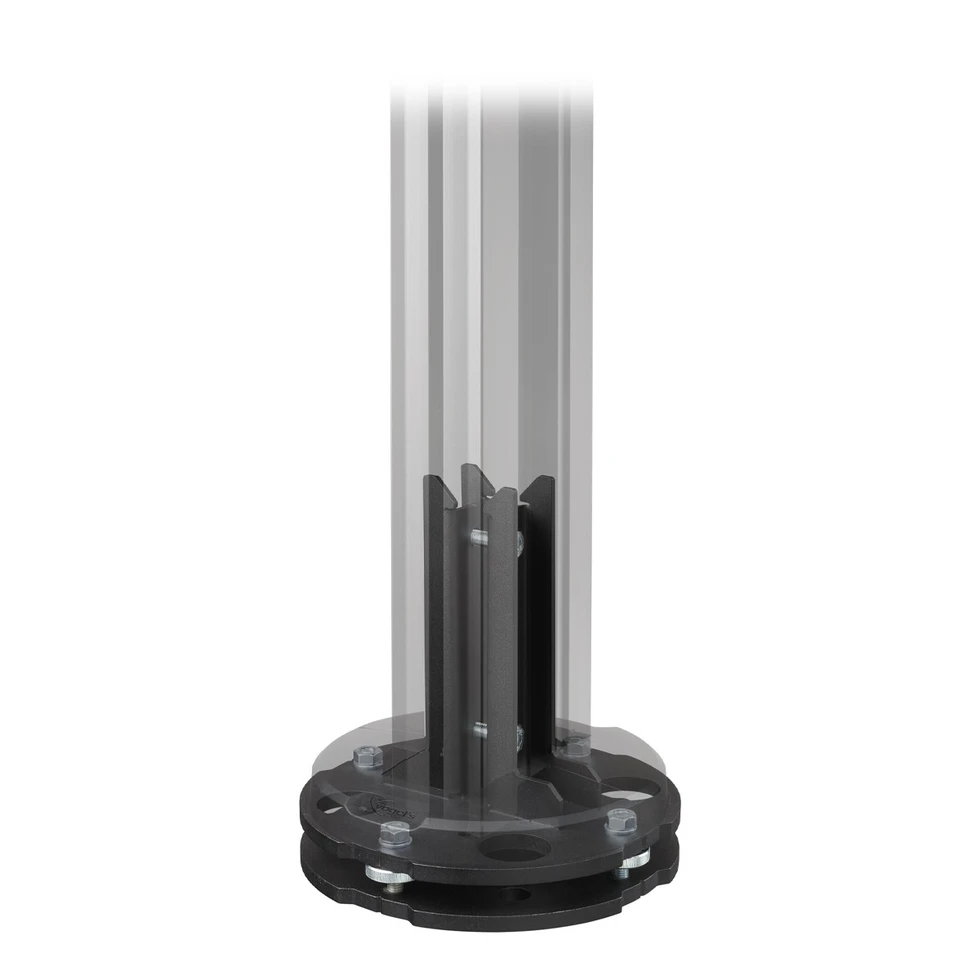 Напольная пластина с фиксацией к полу для стендов и видеостен модульной крепежной системы Universal video wall и BARCO UniSee. Совместима со штангами PUC 29xx. Декоративная брендированная накладка, полностью скрывающая крепеж. Диаметр основания: 236 мм. Макс. нагрузка: 2 х 337,5 кг. Материал пластины: сталь. Цвет черный. Габаритные размеры (ШxГxВ): 234х236х34 мм.