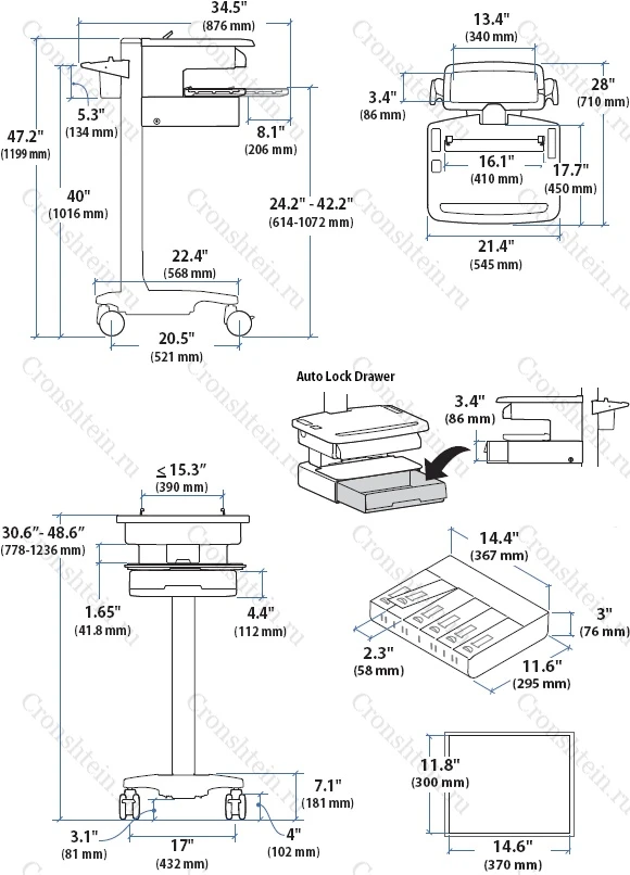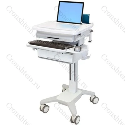 Металлическая стойка Ergotron напольная на колесах для крепления компьютерного оборудования серии "StyleView" для монтажа ноутбука, с одним запирающимся металлическим ящиком, создает передвижное, настраиваемое под рост оператора рабочее место для работы сидя или стоя, без системы бесперебойного питания.