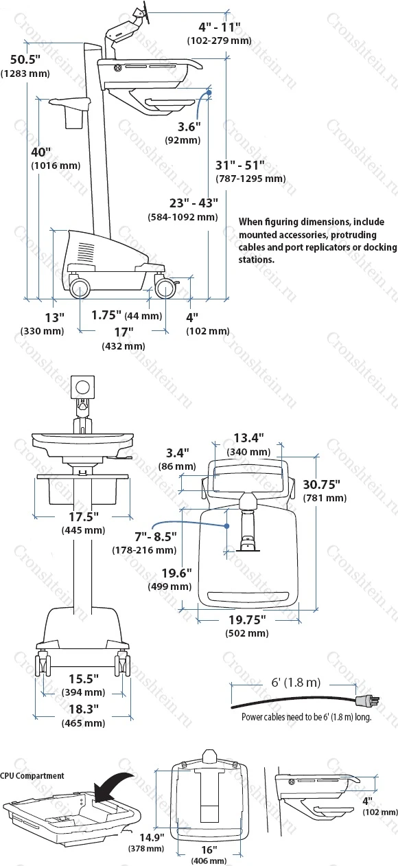 • Регулировка высоты: 25" (63.5 cm)