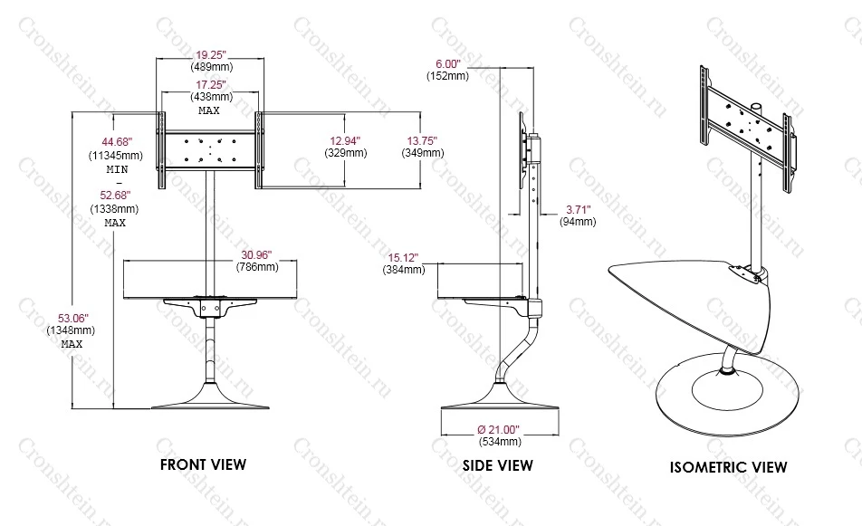 FPZ-646 - напольная стойка для установки LСD и PDP панелей до 46'' и до 45 кг с круглым устойчивым основанием. Полка для дополнительного оборудования. Высота установки от пола 1346 мм, посадочные размеры между отверстиями - до 438х329 мм.