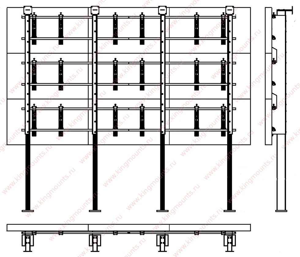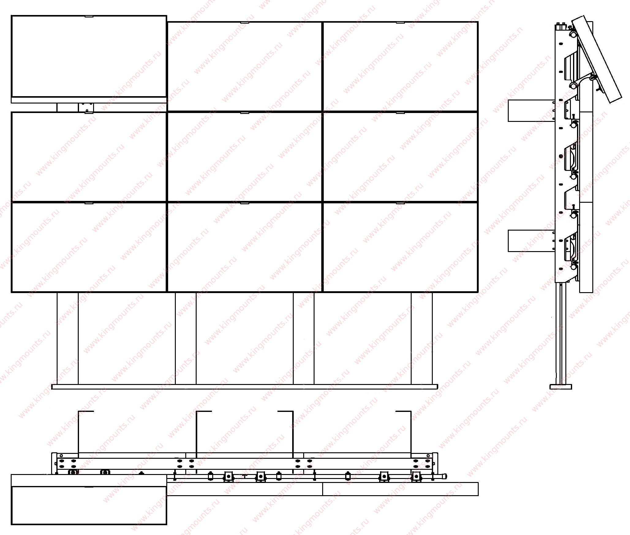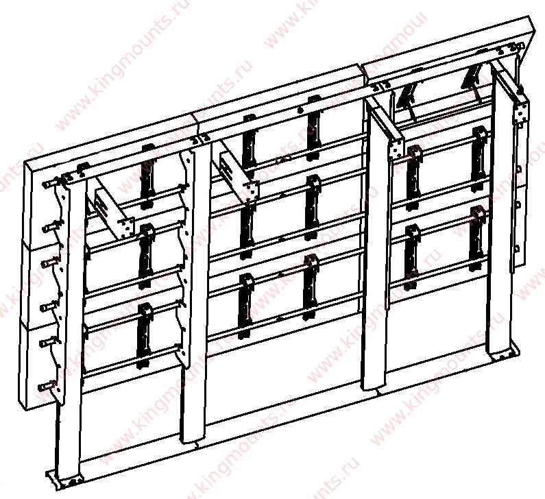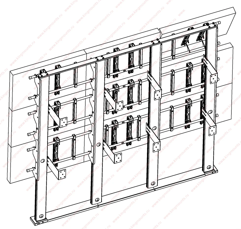 Данное крепление применяется в случаях, когда нет возможности закрепить дисплеи на стене или при создании видеоперегородки в магазинах, переговорных, гостиницах и т.д. Вертикальные столбы каркаса изготовлены из специального профиля, обеспечивающего регулировку по всему диапазону высот. Глубина крепления не менее 800 мм. – вы спокойно сможете разместить за дисплеями оборудование и источники сигнала и питания. После монтажа такого крепления для видеостены, все элементы метало-каркаса,легко декорируются. Юстировка дисплеев (выравнивание) осуществляется в трех плоскостях, в диапазоне 25 мм. с помощью системы микро регулировкиiwall. Шаг микро регулировки: 0,1 мм. Технологический зазор между панелями должен составлять не менее 1 мм. Крепление универсальное и подходит для дисплеев любых производителей. В комплекте крепления прилагается инструкция и чертеж разработанная именно под ваш случай и задачу.