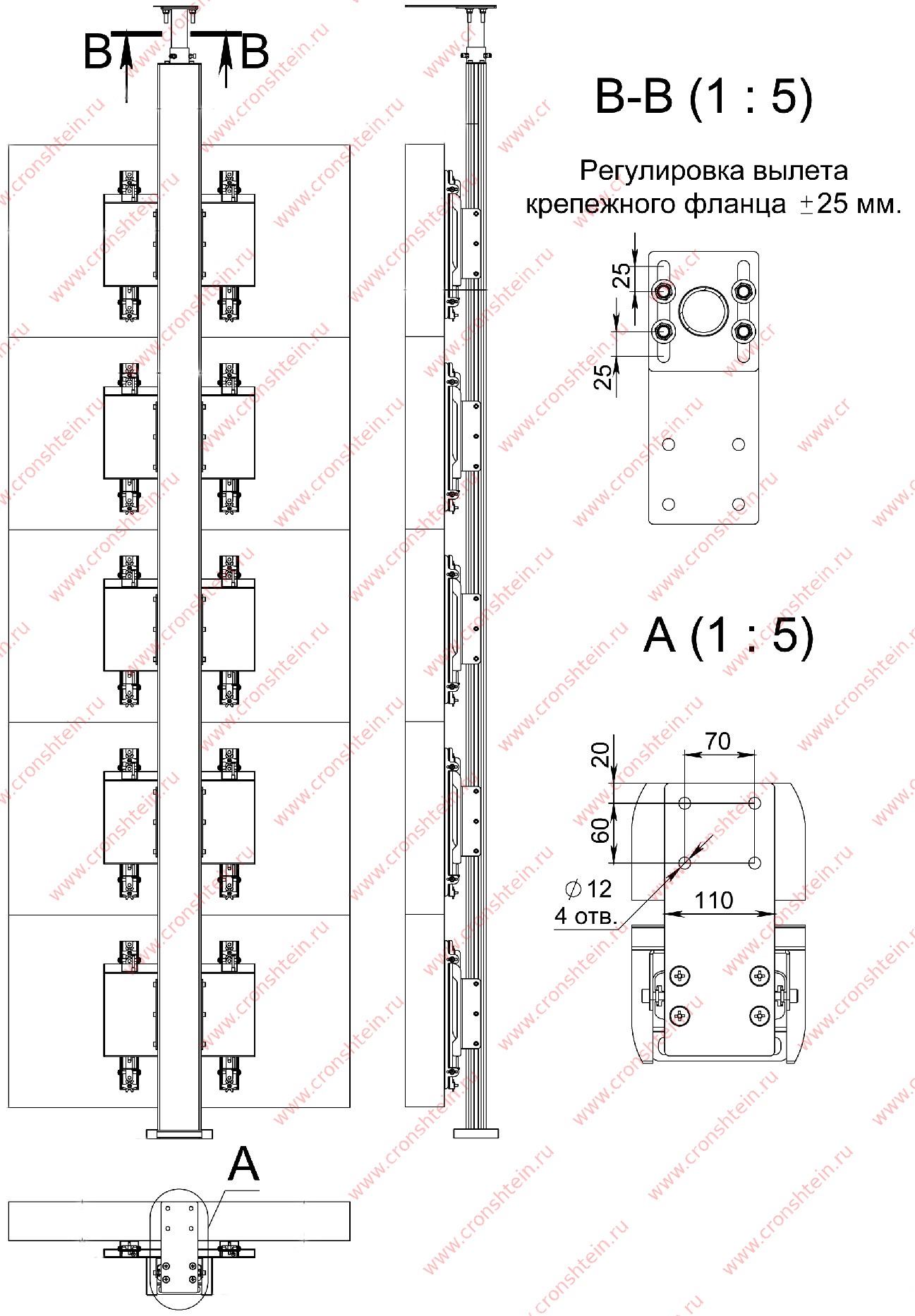 Данное крепление применяется в случаях, когда нет возможности закрепить дисплеи на стене или при создании видеоперегородки в магазинах, переговорных, гостиницах и т.д. Вертикальные столбы каркаса изготовлены из специального профиля, обеспечивающего регулировку по всему диапазону высот. Глубина крепления не менее 800 мм. – вы спокойно сможете разместить за дисплеями оборудование и источники сигнала и питания. После монтажа такого крепления для видеостены, все элементы метало-каркаса,легко декорируются. Юстировка дисплеев (выравнивание) осуществляется в трех плоскостях, в диапазоне 25 мм. с помощью системы микро регулировкиiwall. Шаг микро регулировки: 0,1 мм. Технологический зазор между панелями должен составлять не менее 1 мм. Крепление универсальное и подходит для дисплеев любых производителей. В комплекте крепления прилагается инструкция и чертеж разработанная именно под ваш случай и задачу.