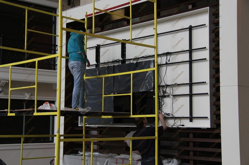 В Санкт-Петербурге, в строящемся БЦ "Ренессанс правда",совместно с компанией "VidaVision" закончился монтаж профессиональных видеопанелей; на наше крепление для видеостены. Данное крепление 3х3 настенное,с распорками для удобного и быстрого монтажа панелей.