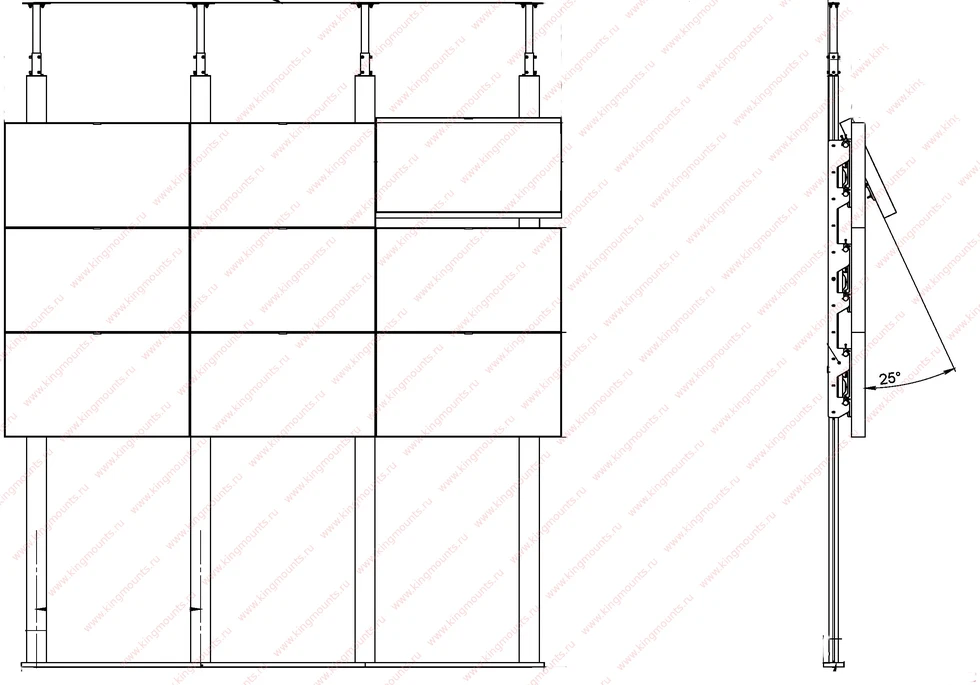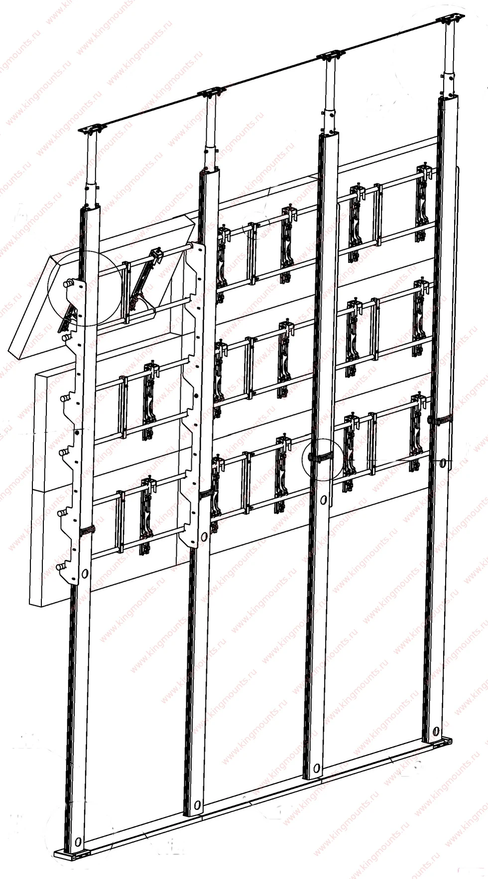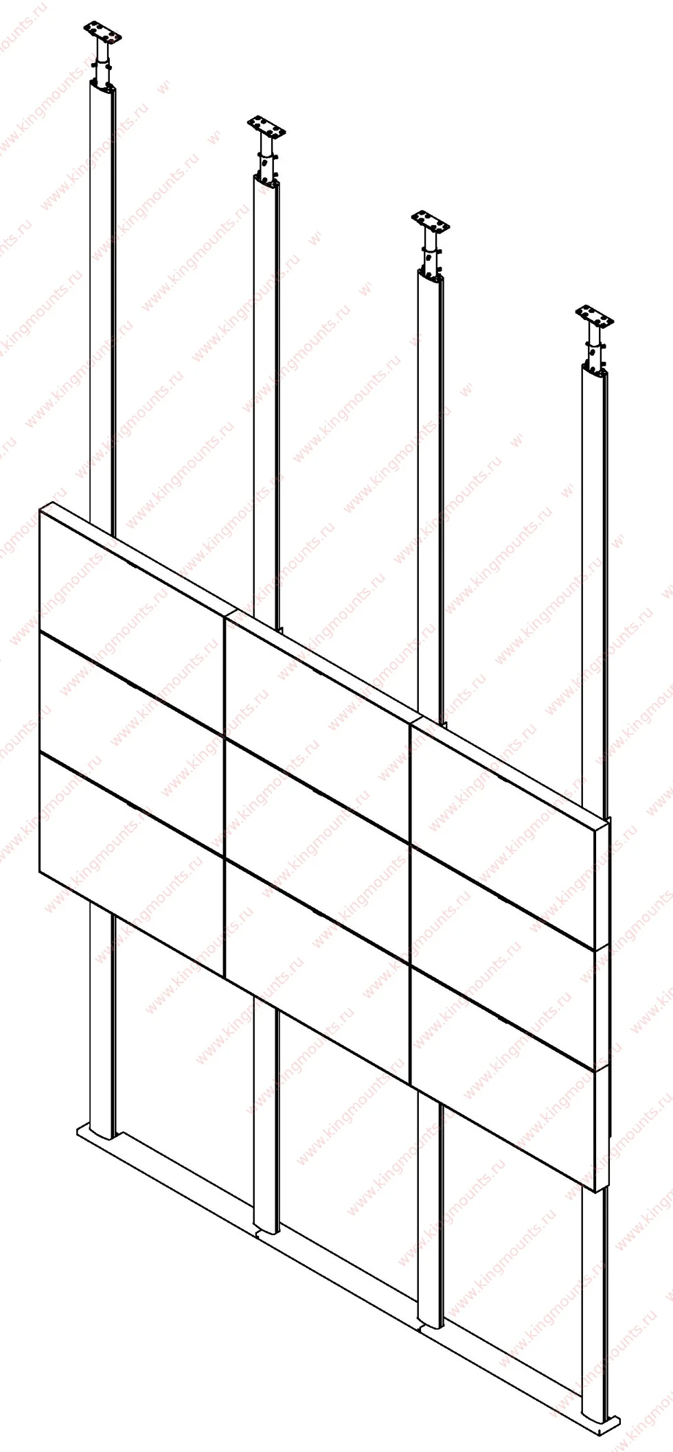Данное крепление применяется в случаях, когда нет возможности закрепить дисплеи на стене или при создании видеоперегородки в магазинах, переговорных, гостиницах и т.д. Вертикальные столбы каркаса изготовлены из специального профиля, обеспечивающего регулировку по всему диапазону высот. Глубина крепления не менее 800 мм. – вы спокойно сможете разместить за дисплеями оборудование и источники сигнала и питания. После монтажа такого крепления для видеостены, все элементы метало-каркаса,легко декорируются. Юстировка дисплеев (выравнивание) осуществляется в трех плоскостях, в диапазоне 25 мм. с помощью системы микро регулировкиiwall. Шаг микро регулировки: 0,1 мм. Технологический зазор между панелями должен составлять не менее 1 мм. Крепление универсальное и подходит для дисплеев любых производителей. В комплекте крепления прилагается инструкция и чертеж разработанная именно под ваш случай и задачу.