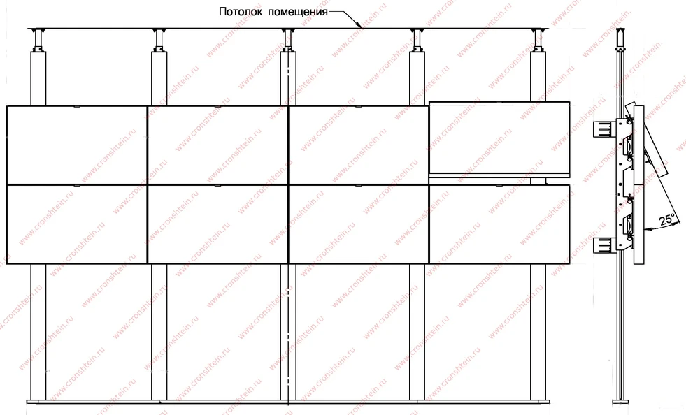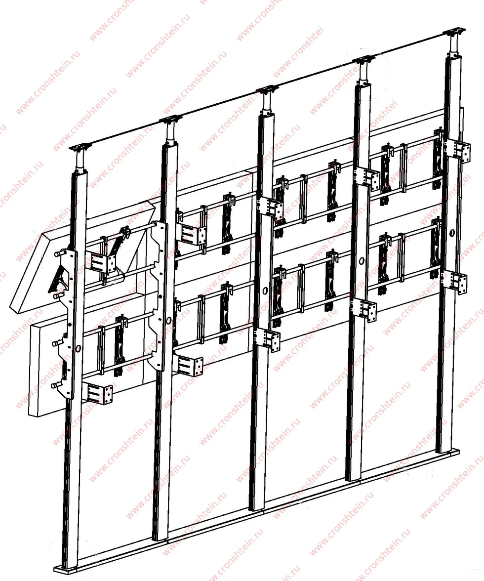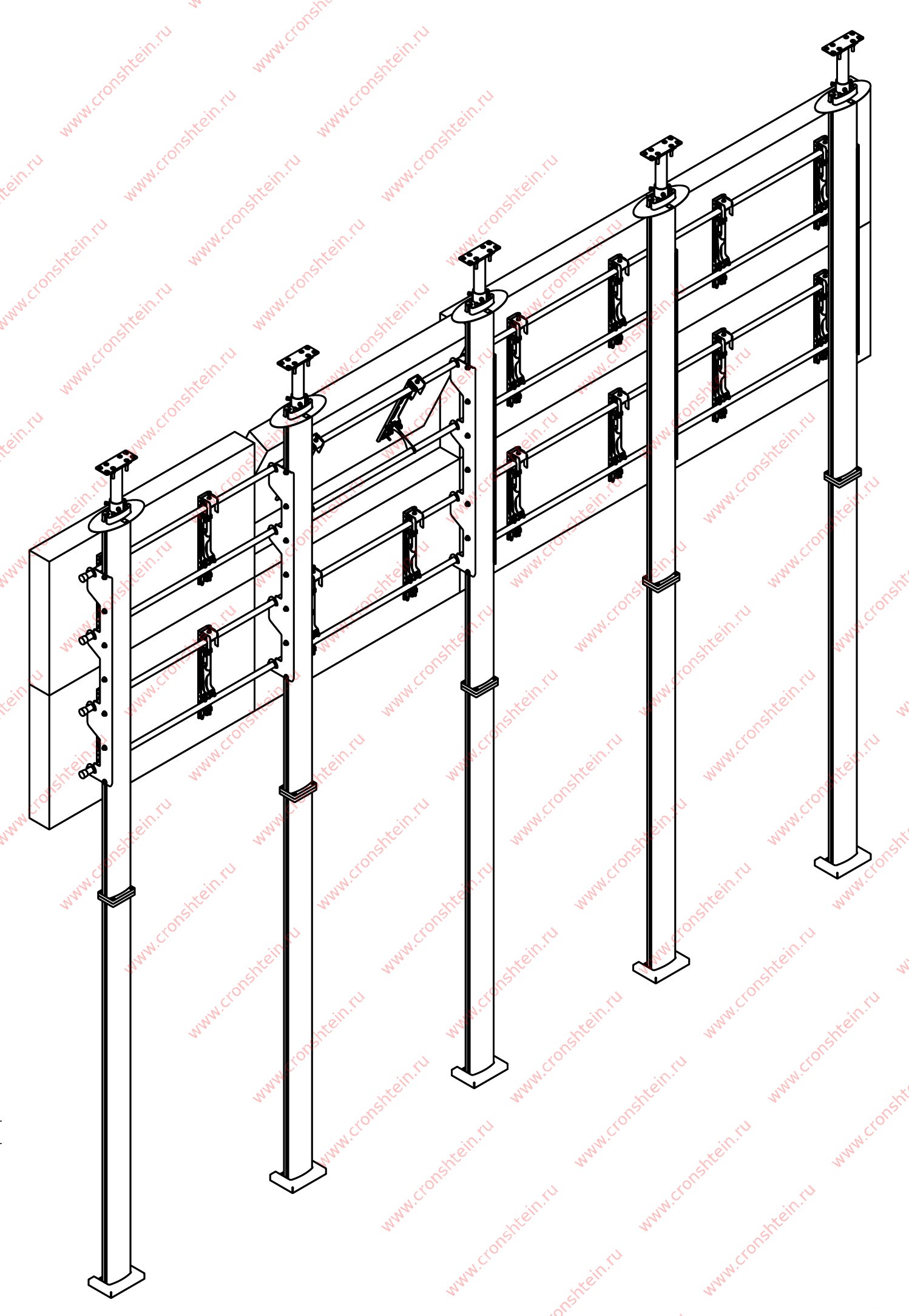 Данное крепление применяется в случаях, когда нет возможности закрепить дисплеи на стене или при создании видеоперегородки в магазинах, переговорных, гостиницах и т.д. Вертикальные столбы каркаса изготовлены из специального профиля, обеспечивающего регулировку по всему диапазону высот. Глубина крепления не менее 800 мм. – вы спокойно сможете разместить за дисплеями оборудование и источники сигнала и питания. После монтажа такого крепления для видеостены, все элементы метало-каркаса,легко декорируются. Юстировка дисплеев (выравнивание) осуществляется в трех плоскостях, в диапазоне 25 мм. с помощью системы микро регулировкиiwall. Шаг микро регулировки: 0,1 мм. Технологический зазор между панелями должен составлять не менее 1 мм. Крепление универсальное и подходит для дисплеев любых производителей. В комплекте крепления прилагается инструкция и чертеж разработанная именно под ваш случай и задачу.