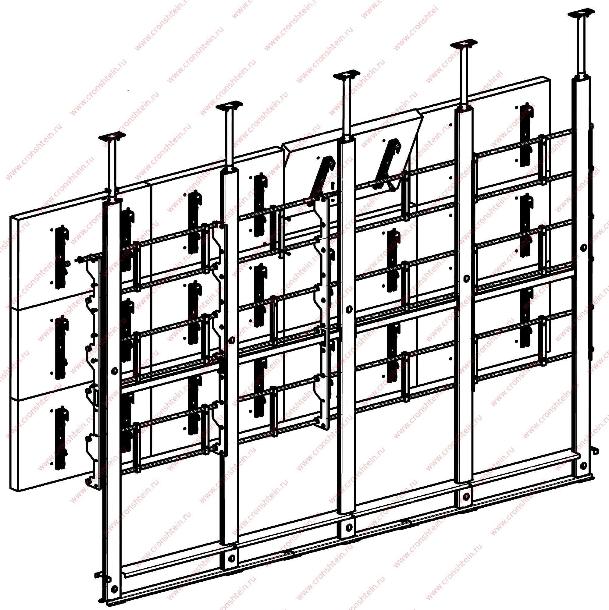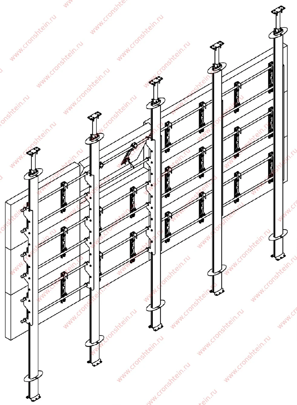 Данное крепление применяется в случаях, когда нет возможности закрепить дисплеи на стене или при создании видеоперегородки в магазинах, переговорных, гостиницах и т.д. Вертикальные столбы каркаса изготовлены из специального профиля, обеспечивающего регулировку по всему диапазону высот. Глубина крепления не менее 800 мм. – вы спокойно сможете разместить за дисплеями оборудование и источники сигнала и питания. После монтажа такого крепления для видеостены, все элементы метало-каркаса,легко декорируются. Юстировка дисплеев (выравнивание) осуществляется в трех плоскостях, в диапазоне 25 мм. с помощью системы микро регулировкиiwall. Шаг микро регулировки: 0,1 мм. Технологический зазор между панелями должен составлять не менее 1 мм. Крепление универсальное и подходит для дисплеев любых производителей. В комплекте крепления прилагается инструкция и чертеж разработанная именно под ваш случай и задачу.