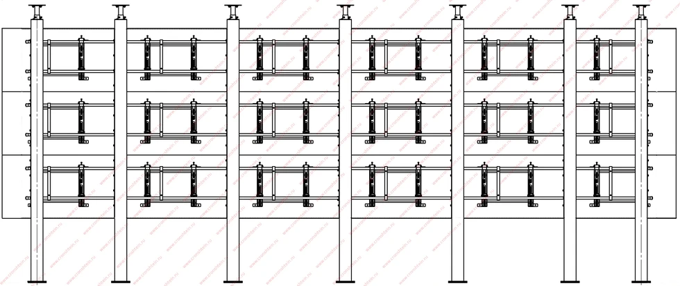 Данное крепление применяется в случаях, когда нет возможности закрепить дисплеи на стене или при создании видеоперегородки в магазинах, переговорных, гостиницах и т.д. Вертикальные столбы каркаса изготовлены из специального профиля, обеспечивающего регулировку по всему диапазону высот. Глубина крепления не менее 800 мм. – вы спокойно сможете разместить за дисплеями оборудование и источники сигнала и питания. После монтажа такого крепления для видеостены, все элементы метало-каркаса,легко декорируются. Юстировка дисплеев (выравнивание) осуществляется в трех плоскостях, в диапазоне 25 мм. с помощью системы микро регулировкиiwall. Шаг микро регулировки: 0,1 мм. Технологический зазор между панелями должен составлять не менее 1 мм. Крепление универсальное и подходит для дисплеев любых производителей. В комплекте крепления прилагается инструкция и чертеж разработанная именно под ваш случай и задачу.