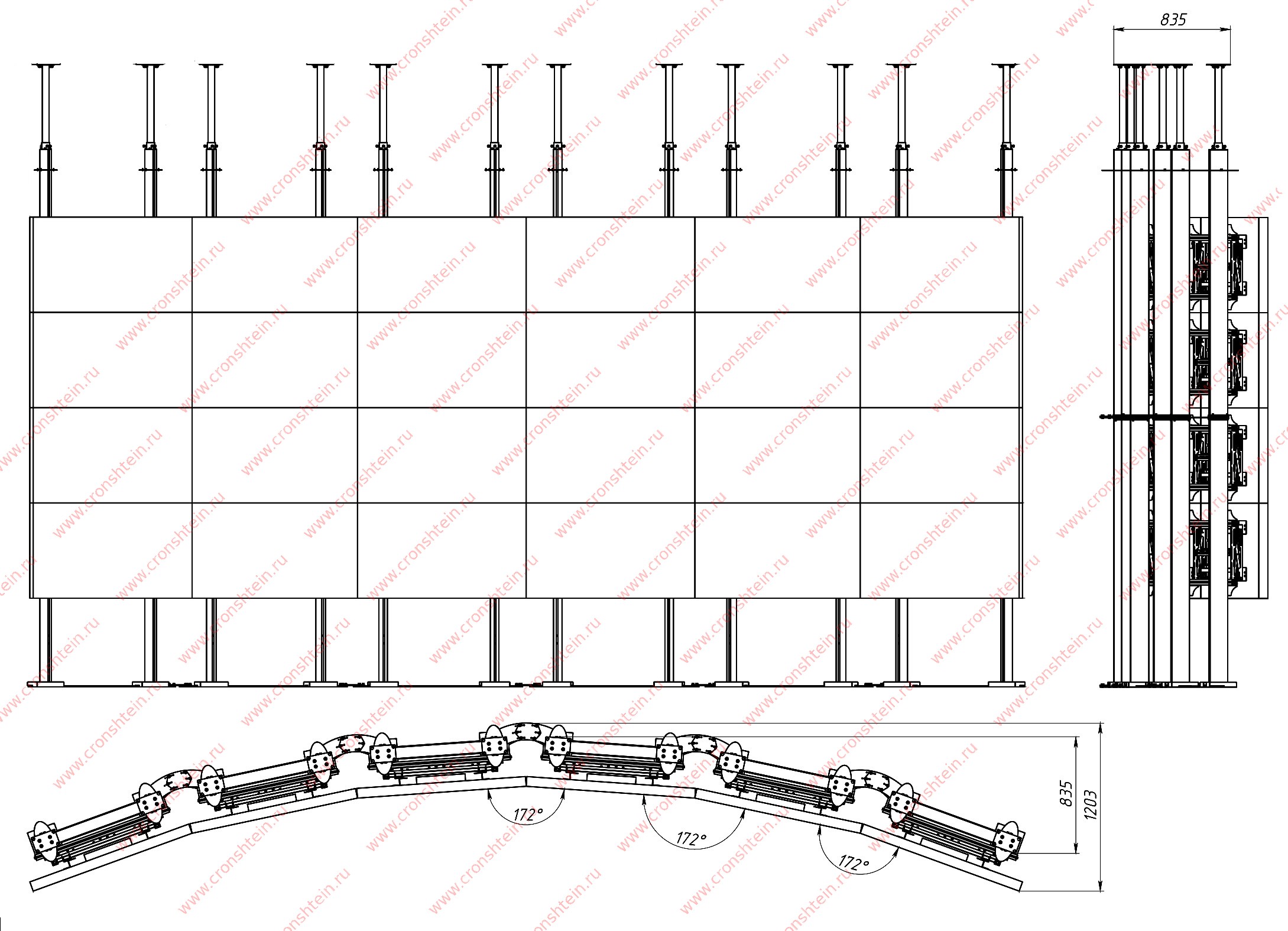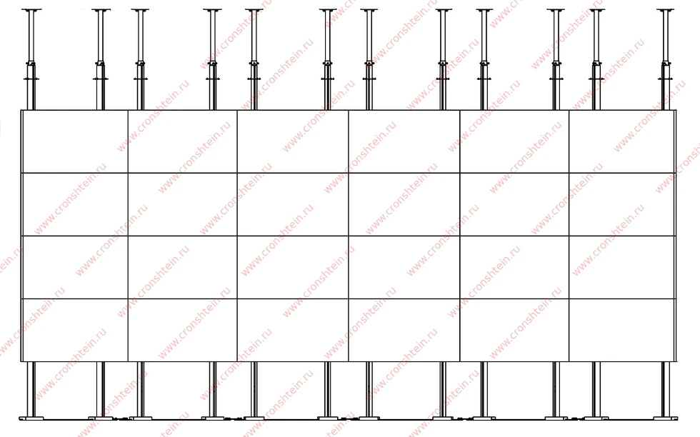 Данное крепление применяется в случаях, когда нет возможности закрепить дисплеи на стене или при создании видеоперегородки в магазинах, переговорных, гостиницах и т.д. Вертикальные столбы каркаса изготовлены из специального профиля, обеспечивающего регулировку по всему диапазону высот. Глубина крепления не менее 800 мм. – вы спокойно сможете разместить за дисплеями оборудование и источники сигнала и питания. После монтажа такого крепления для видеостены, все элементы метало-каркаса,легко декорируются. Юстировка дисплеев (выравнивание) осуществляется в трех плоскостях, в диапазоне 25 мм. с помощью системы микро регулировкиiwall. Шаг микро регулировки: 0,1 мм. Технологический зазор между панелями должен составлять не менее 1 мм. Крепление универсальное и подходит для дисплеев любых производителей. В комплекте крепления прилагается инструкция и чертеж разработанная именно под ваш случай и задачу.