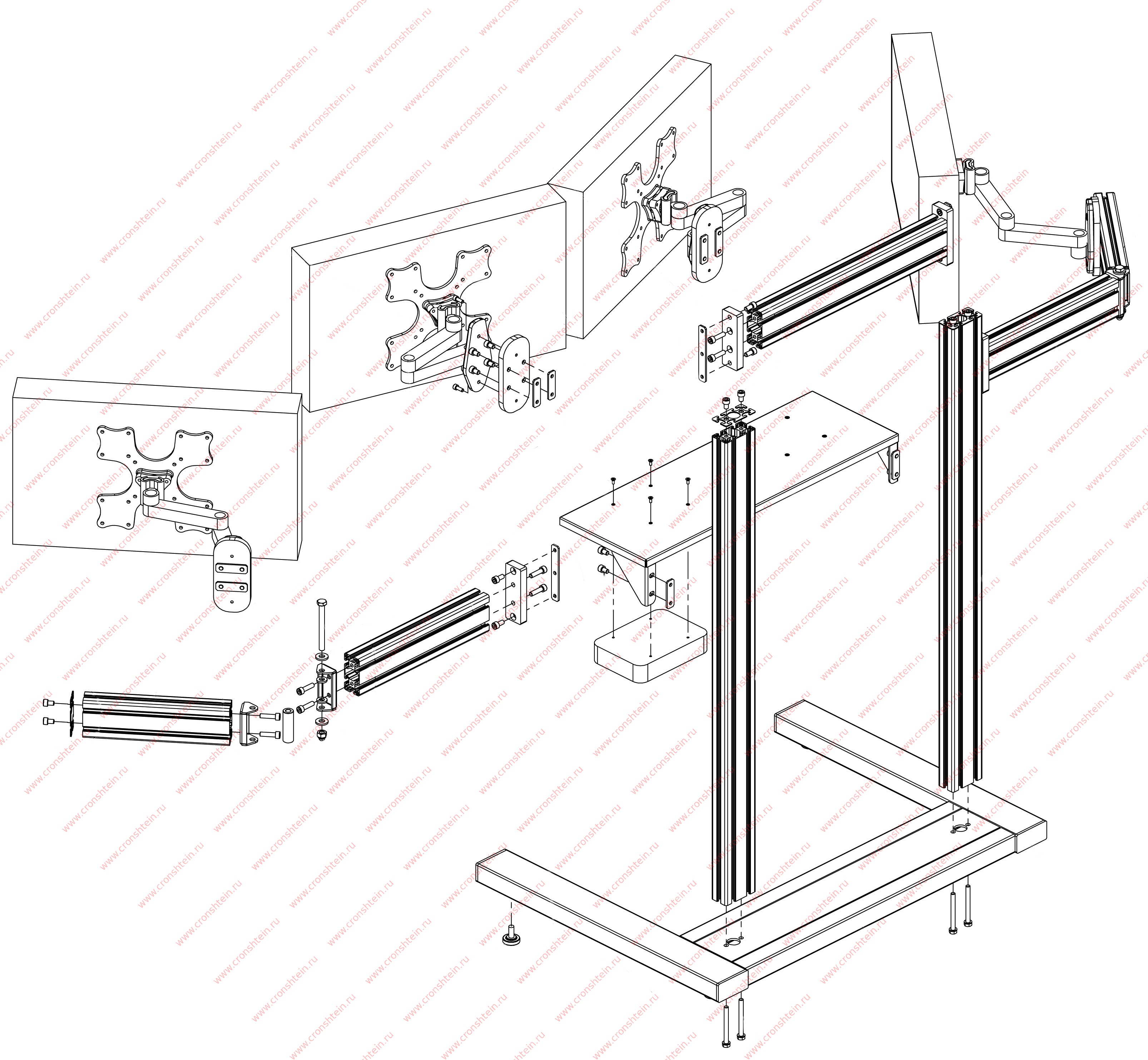 Напольное крепление для видеостены из 4-х мониторов KingMounts MKMG-41