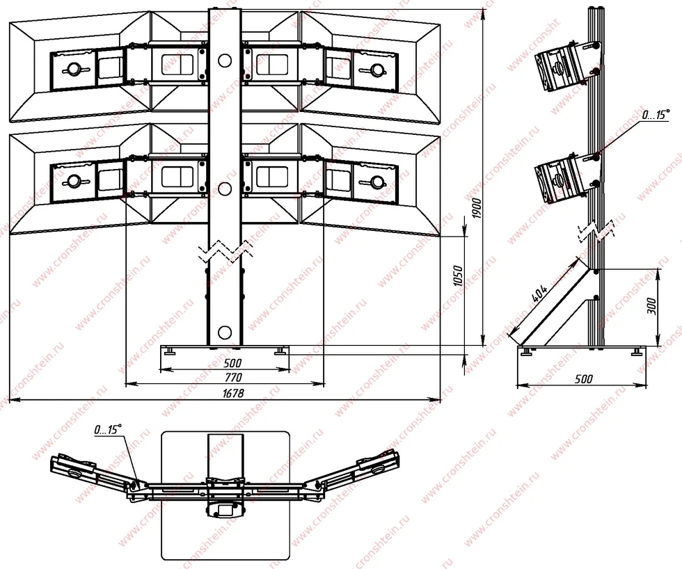 Напольное крепление для видеостены из 6-ти мониторов KingMounts MKMG-32R арт. 49071 с изгибом до 45 и наклоном до 15 градусов.