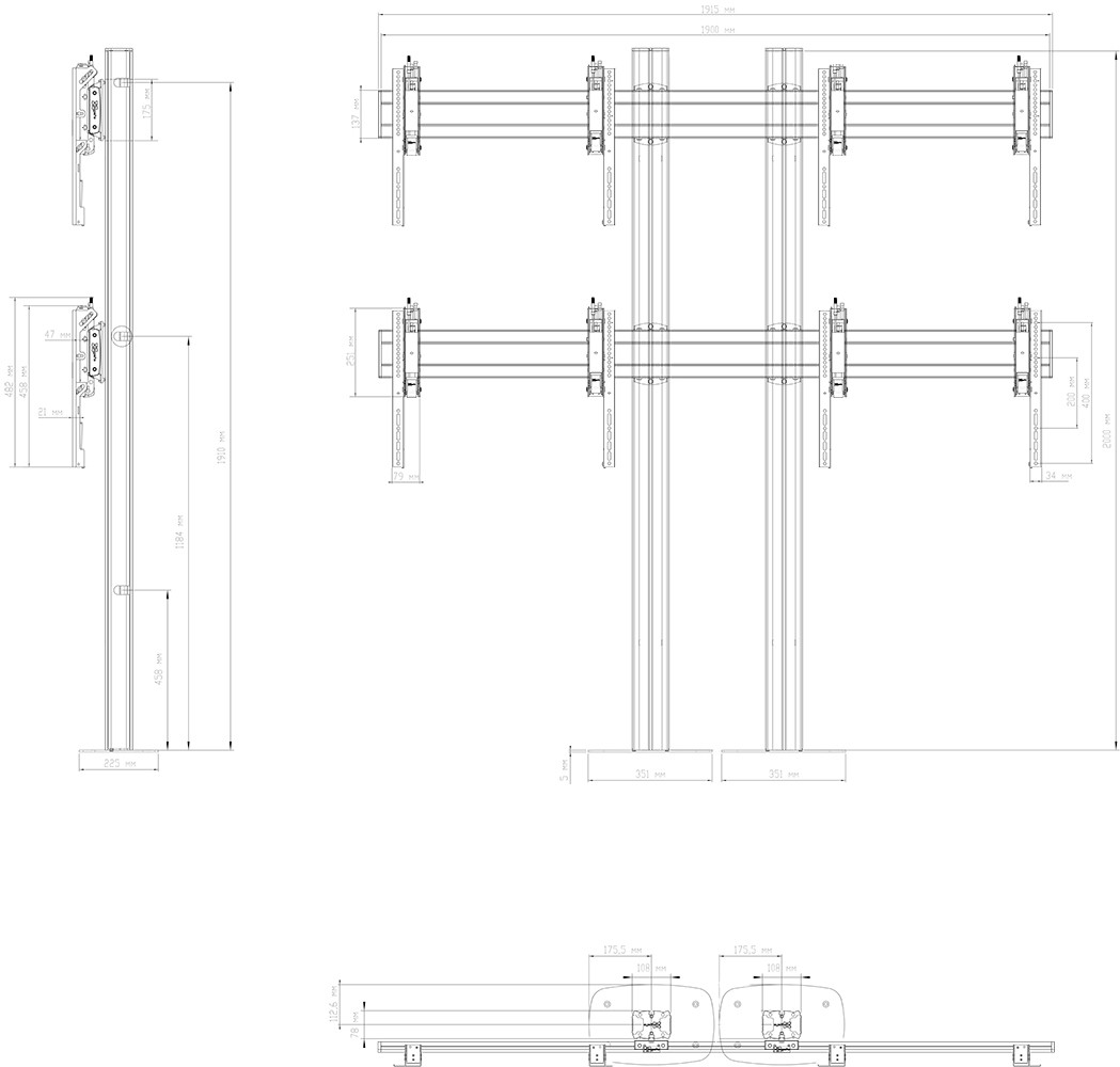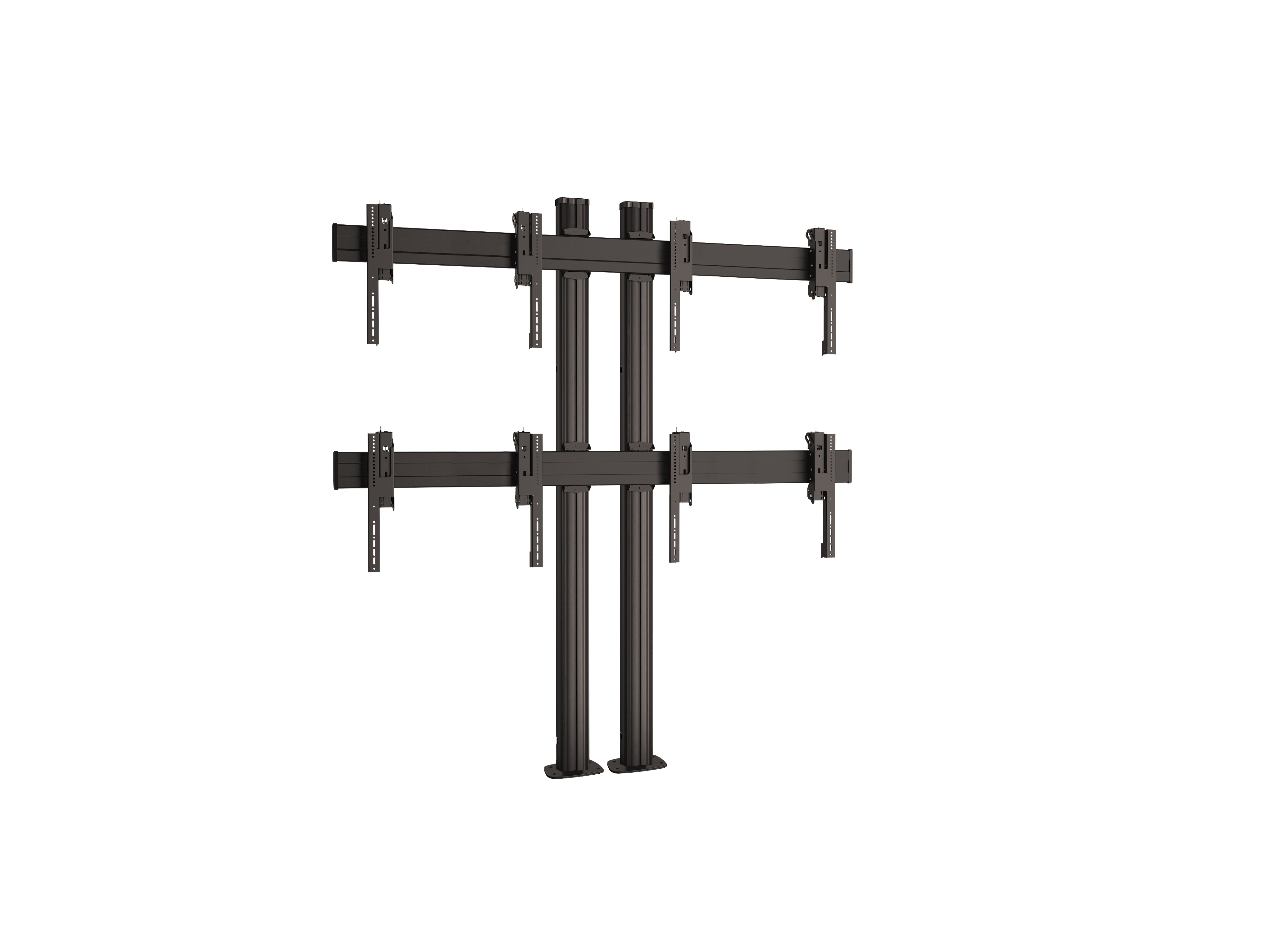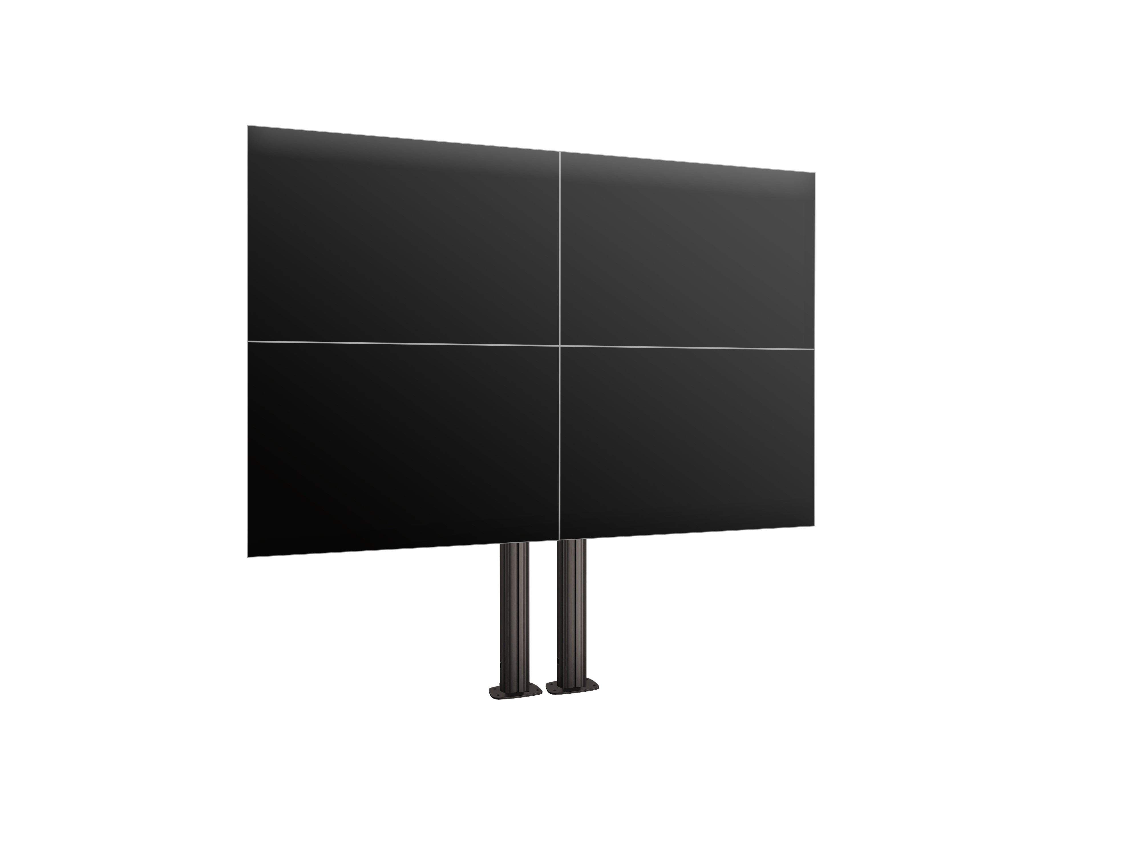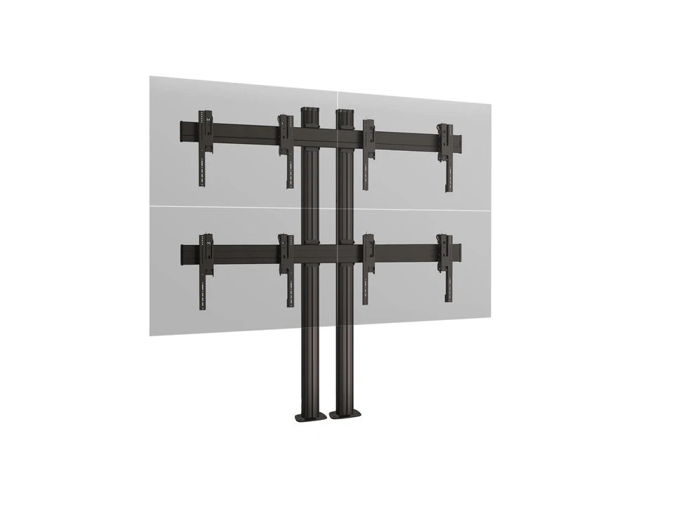 Напольный фиксированный стенд для видеостены 2х2 Vogels FF2264. арт 8944 из дисплеев с диагональю экрана 42-55''. Альбомная ориентация. Стандарт VESA от 200x200 до 600x400 мм. Возможна регулировка каждого дисплея в трех плоскостях и перевод в сервисное положение. Высота штанги - 200 см. Предусмотрен скрытый кабель-канал CIS. Допустимая нагрузка - 300 кг. Мах масса одного дисплея - 70 кг. Цвет черный.
