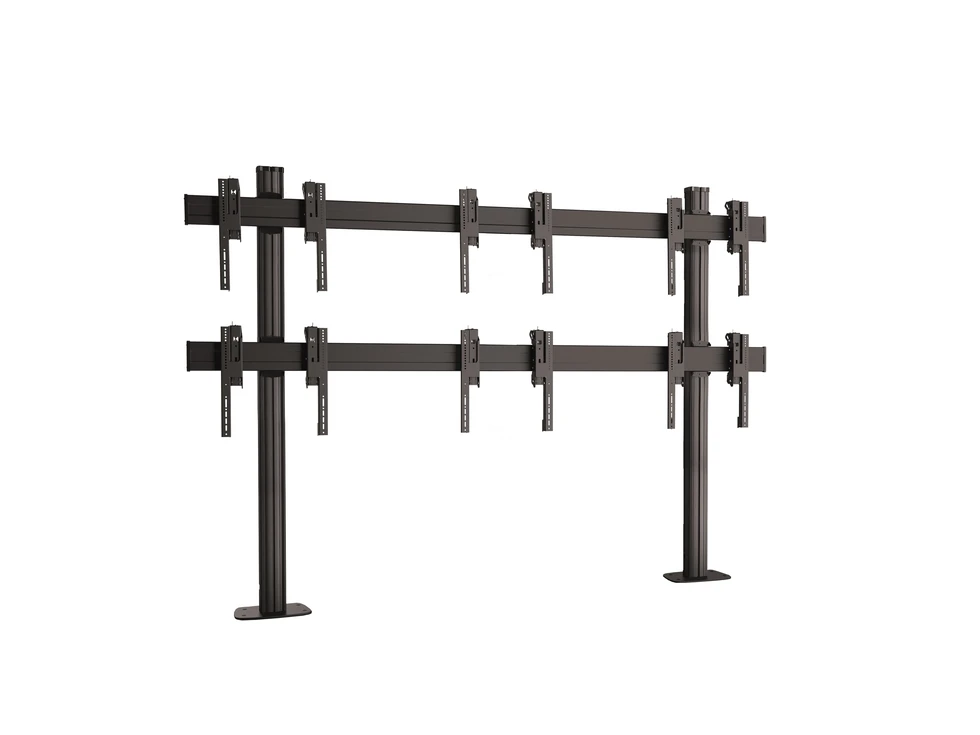 Напольный фиксированный стенд для видеостены 2х3 Vogels FF2344. арт 8947 из дисплеев с диагональю экрана 42-50''. Альбомная ориентация. Стандарт VESA от 200x200 до 400x400 мм. Возможна регулировка каждого дисплея в трех плоскостях и перевод в сервисное положение. Высота штанги - 200 см. Предусмотрен скрытый кабель-канал CIS. Допустимая нагрузка - 300 кг. Мах масса одного дисплея - 50 кг. Цвет чёрный.