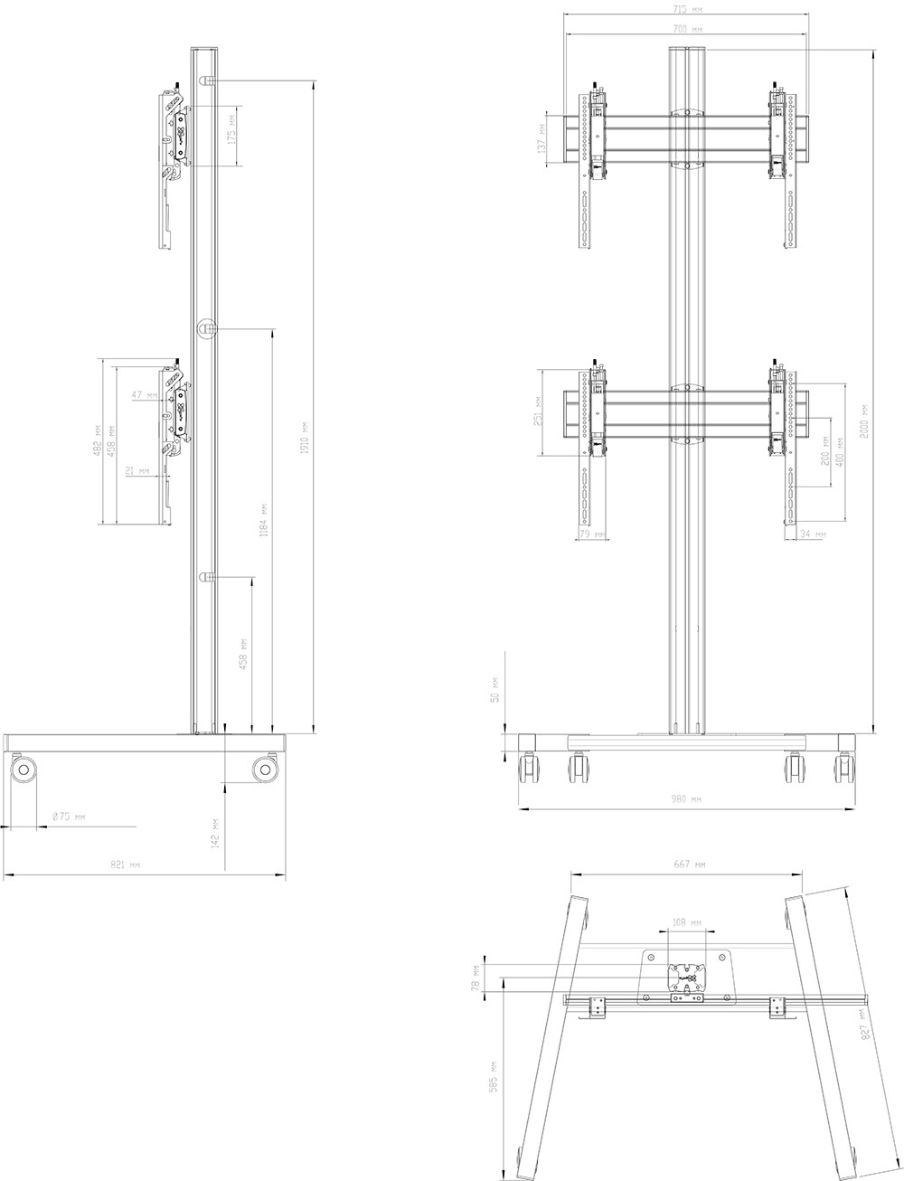 Напольный мобильный стенд для видеостены 2х1 Vogels FT2164