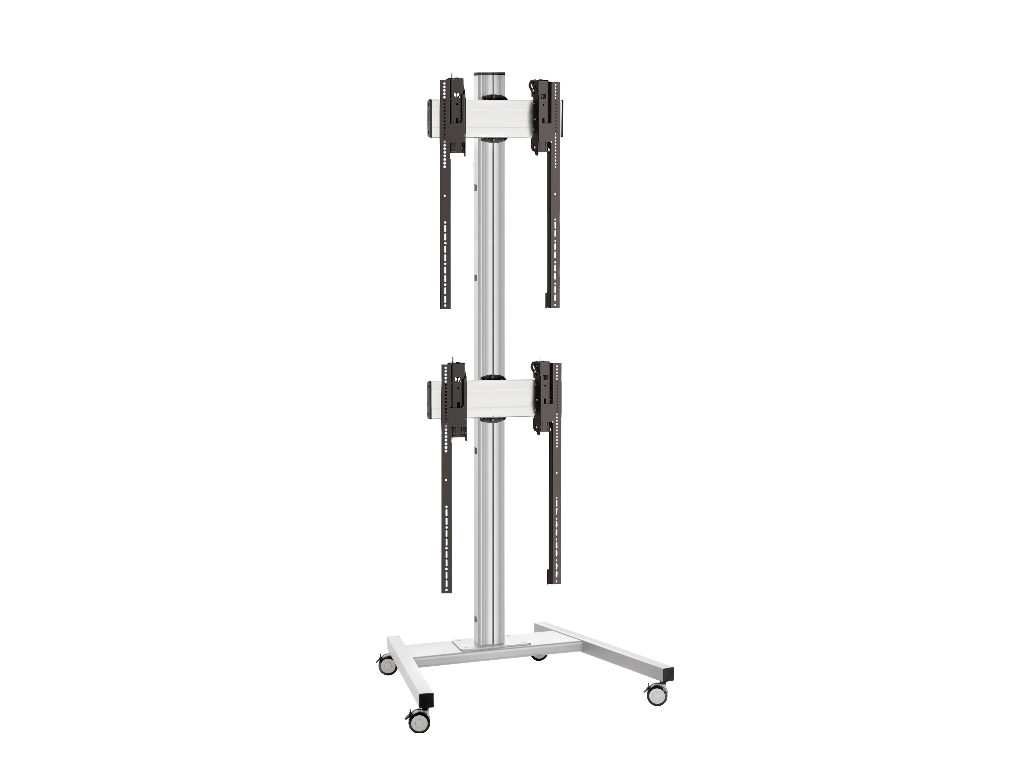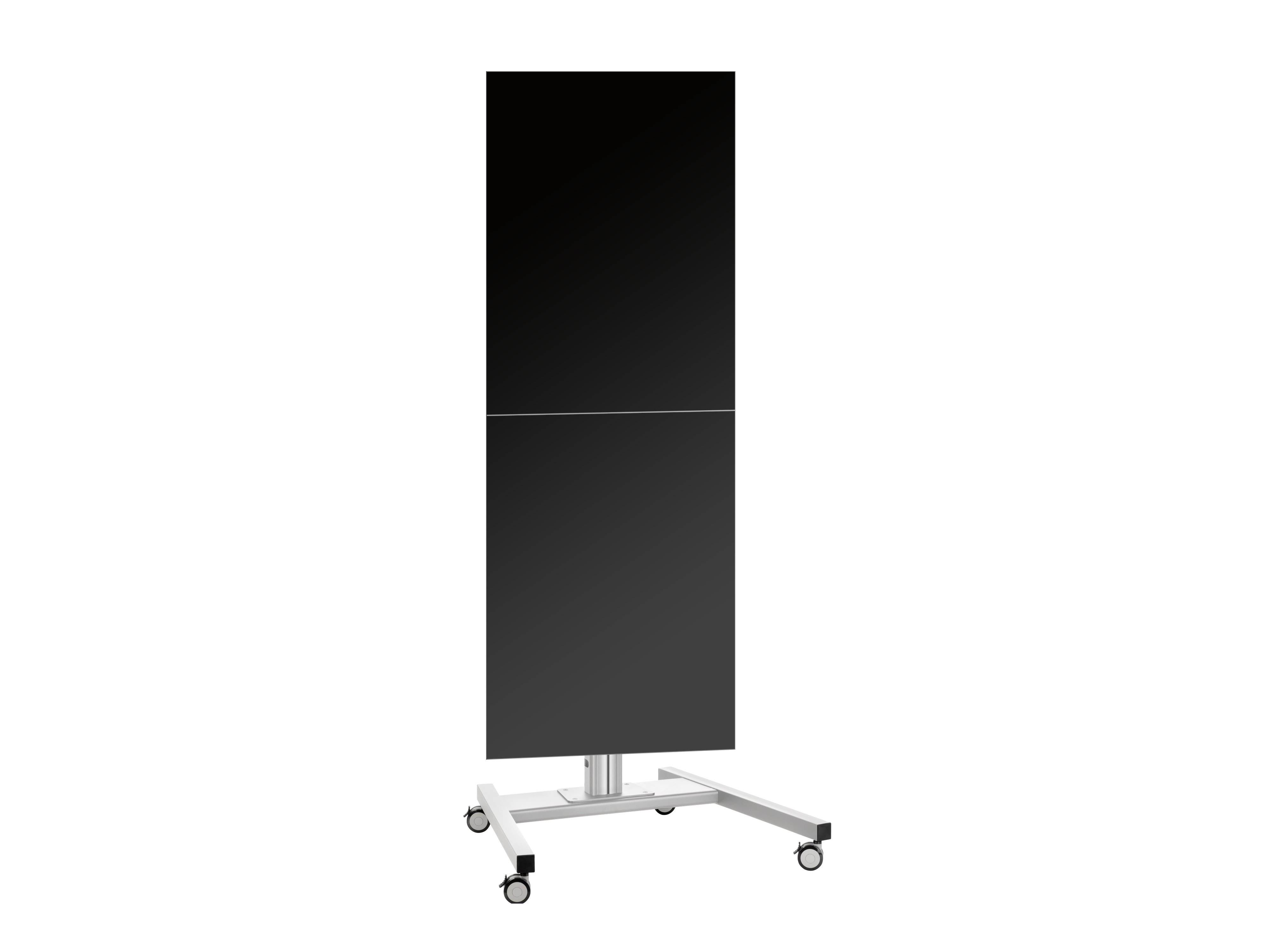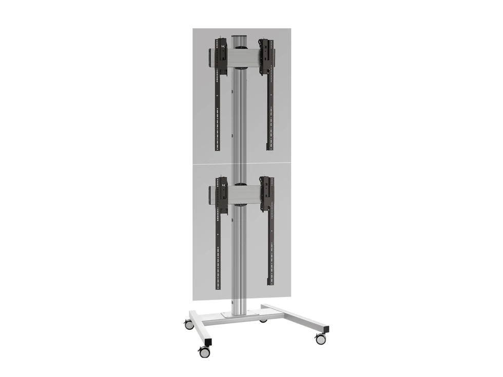 Напольный мобильный стенд для видеостены 2х1 Vogels FT2184P S. арт 8787 из дисплеев с диагональю экрана 40-55''. Портретная ориентация. Стандарт VESA от 200x200 до 800x400 мм. Возможна регулировка каждого дисплея в трех плоскостях и перевод в сервисное положение. Высота штанги с основанием - 215 см. Предусмотрен скрытый кабель канал CIS. Допустимая нагрузка - 60 кг. Мах масса одного дисплея - 30 кг. Цвет серебристый