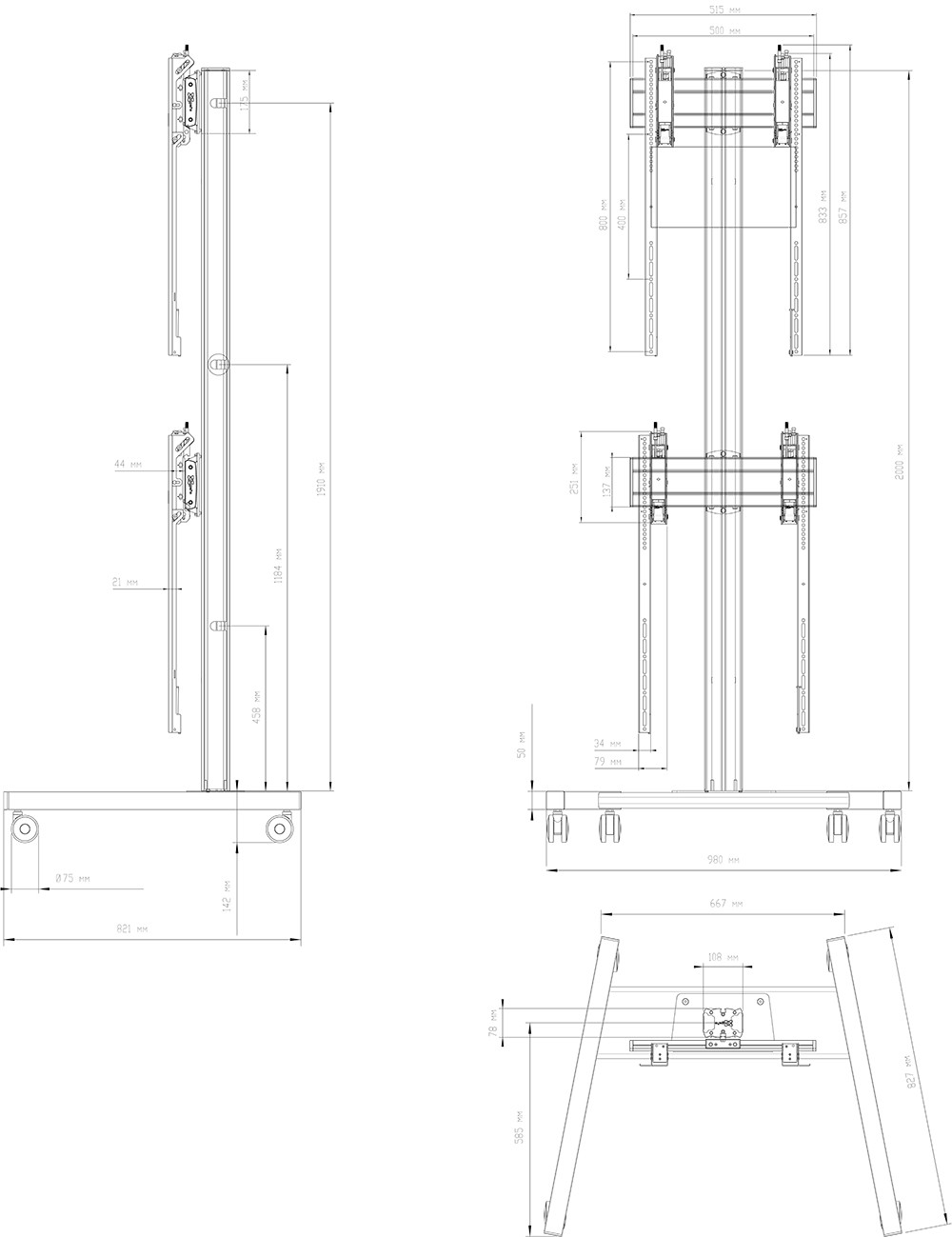 Напольный мобильный стенд для видеостены 2х1 Vogels FT2184P S