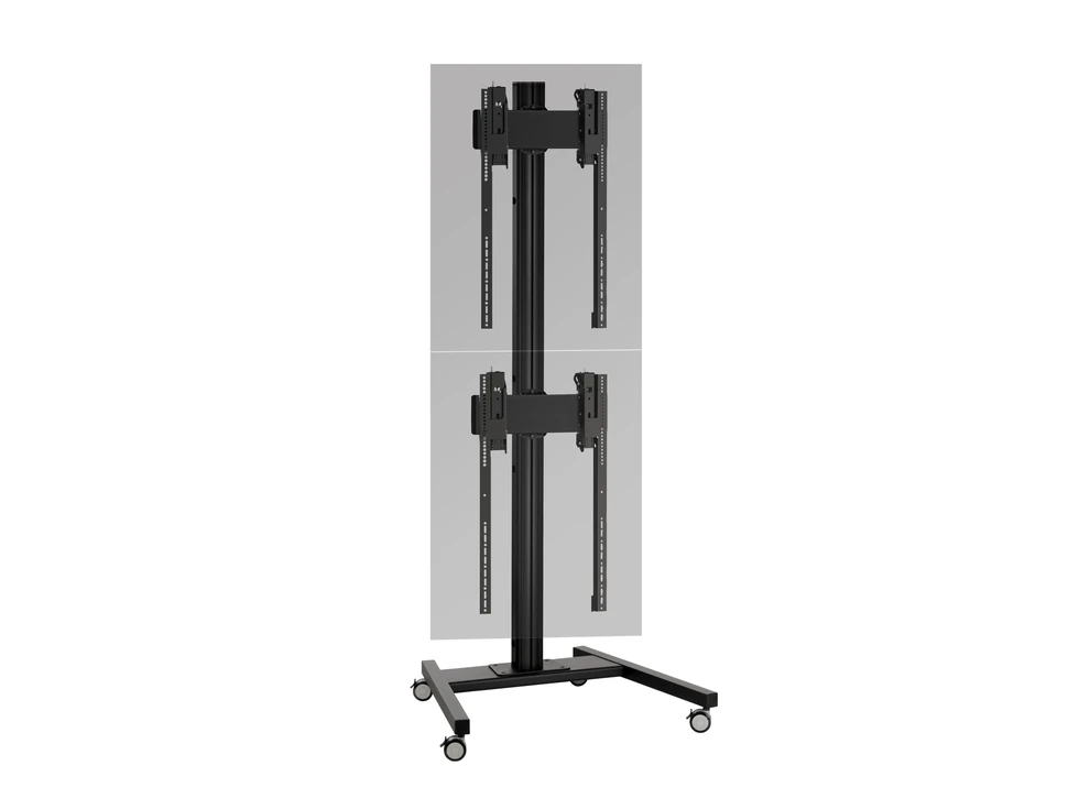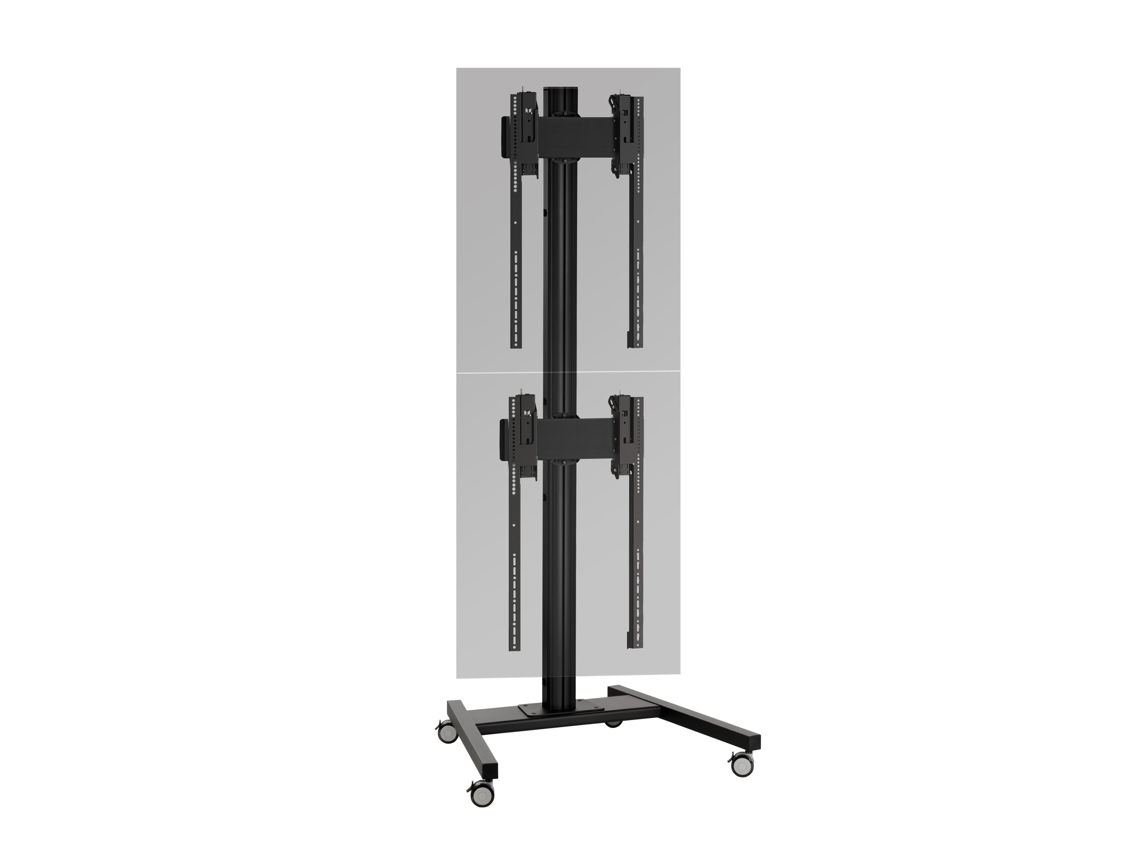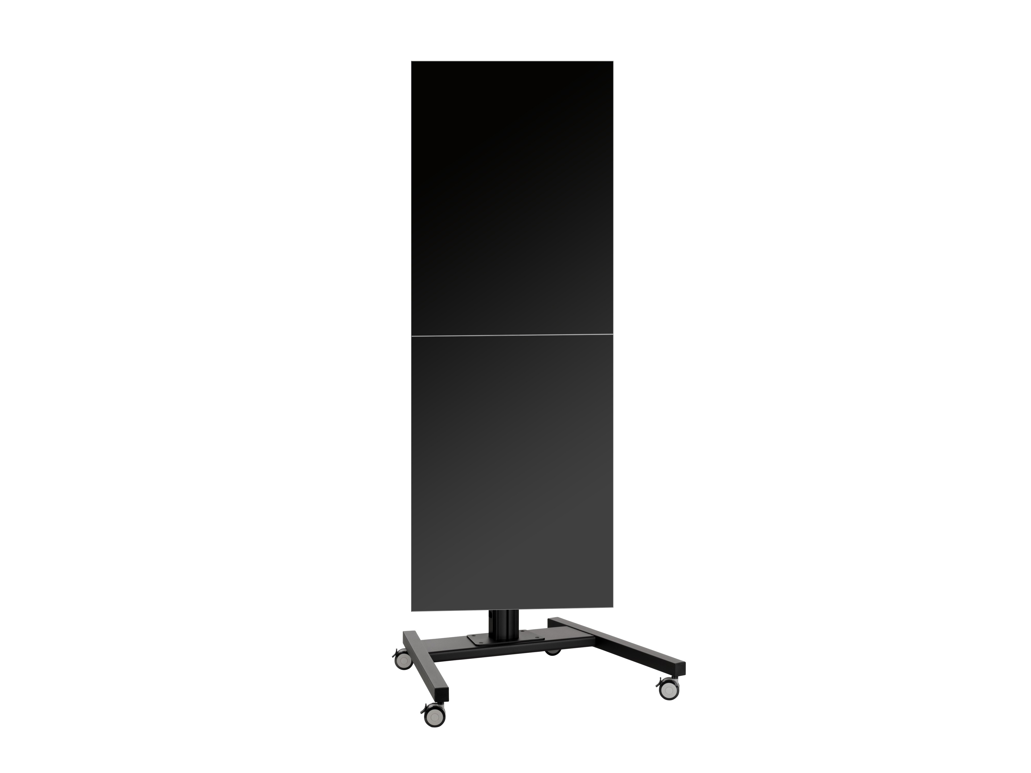 Напольный мобильный стенд для видеостены 2х1 Vogels FT2184P. арт 8786 из дисплеев с диагональю экрана 40-55''. Портретная ориентация. Стандарт VESA от 200x200 до 800x400 мм. Возможна регулировка каждого дисплея в трех плоскостях и перевод в сервисное положение. Высота штанги с основанием - 215 см. Предусмотрен скрытый кабель канал CIS. Допустимая нагрузка - 60 кг. Мах масса одного дисплея - 30 кг. Цвет черный