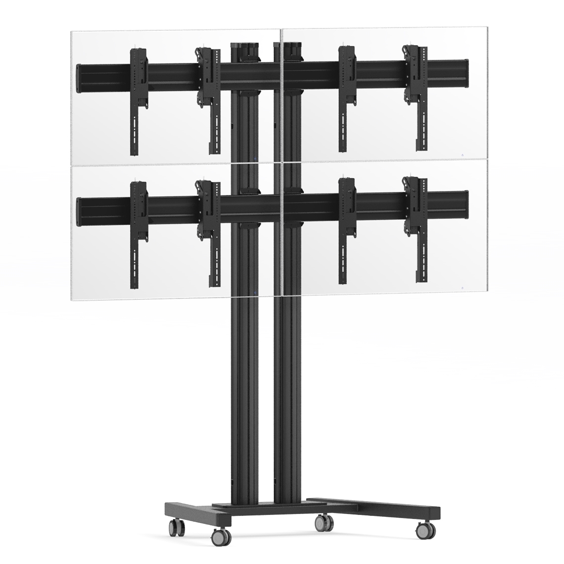 Напольный мобильный стенд для видеостены 2х2 из дисплеев 40–46''. Альбомная ориентация. Стандарт VESA 200x200..600x400 мм. Юстировка каждого дисплея в 3 плоскостях. Сервисное положение. Длина штанги: 2000 мм. Скрытый кабель-канал CIS®. Макс. нагрузка: 148 кг. Макс. масса одного дисплея: 37 кг. Цвет черный.