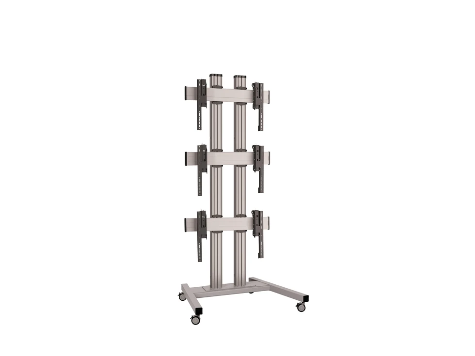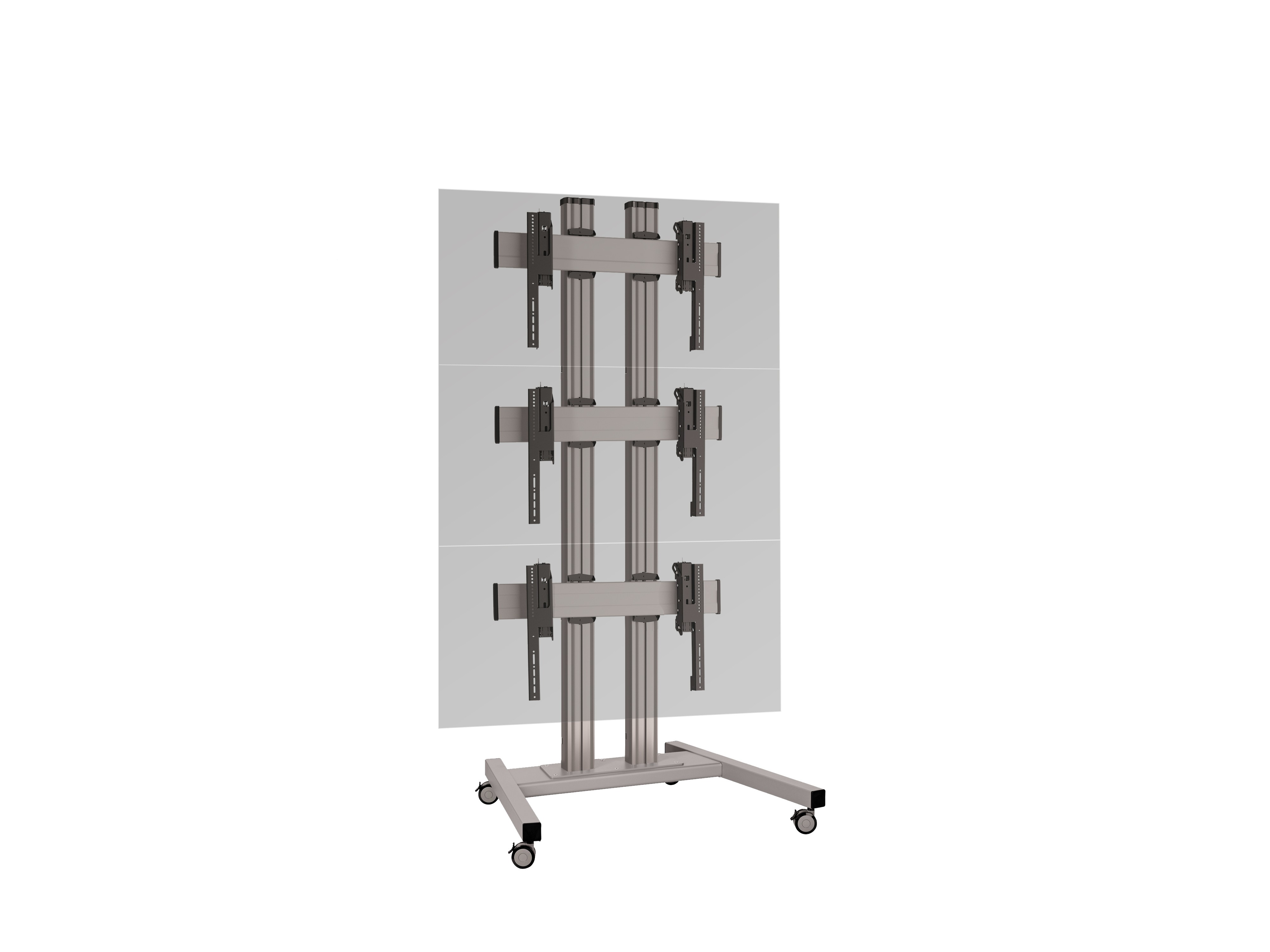 Напольный мобильный стенд для видеостены 3х1 Vogels FT3164S. арт 8923 из дисплеев с диагональю экрана 40-55''. Альбомная ориентация. Стандарт VESA от 200x200 до 600x400 мм. Возможна регулировка каждого дисплея в трех плоскостях и перевод в сервисное положение. Высота штанги с основанием - 215 см. Предусмотрен скрытый кабель-канал CIS. Допустимая нагрузка - 150 кг. Мах масса одного дисплея - 50 кг. Цвет серебристый.