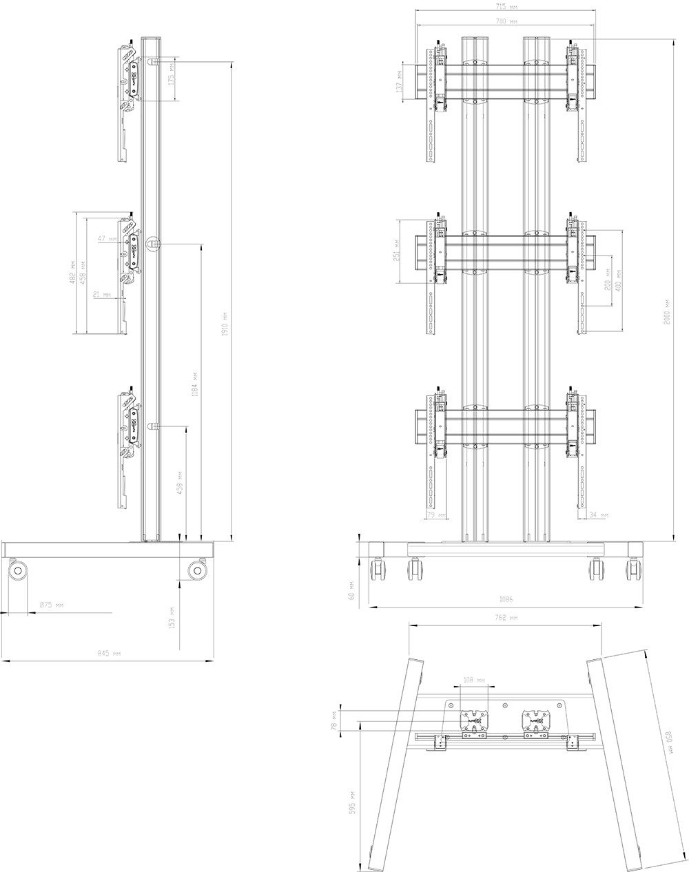Напольный мобильный стенд для видеостены 3х1 Vogels FT3164S