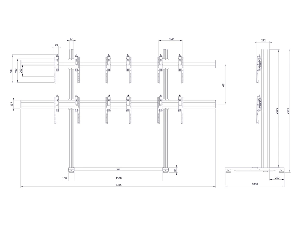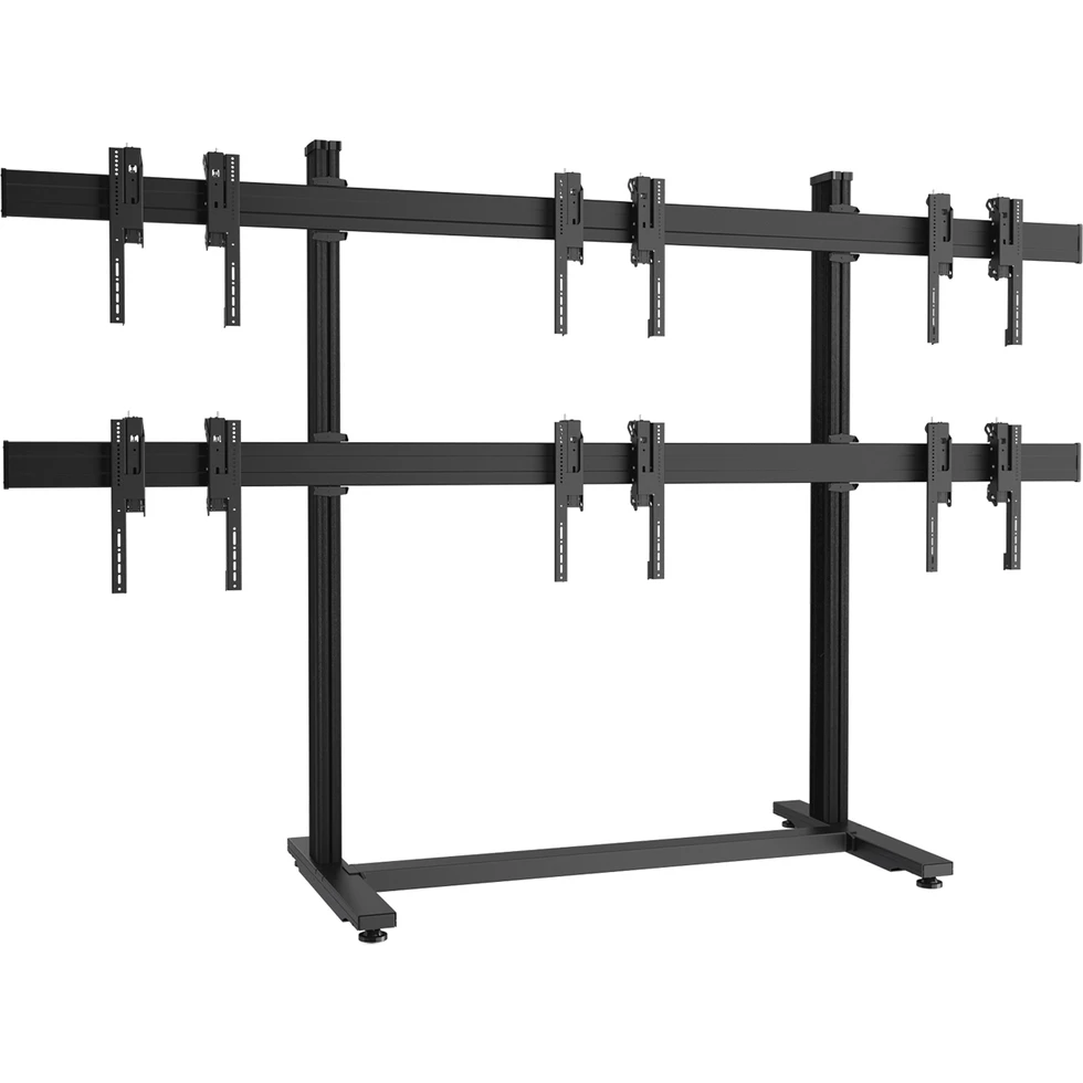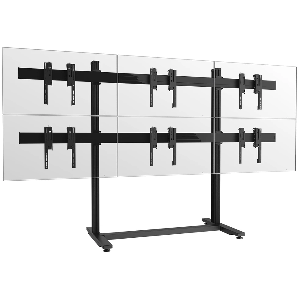 Напольный стационарный стенд для видеостены 2х3 из дисплеев 49–55''. Альбомная ориентация. Стандарт VESA 200x200..400x400 мм. Юстировка каждого дисплея в 3 плоскостях. Сервисное положение. Длина штанги: 2000 мм. Скрытый кабель-канал CIS®. Макс. нагрузка: 324 кг. Макс. масса одного дисплея: 54 кг. Цвет черный.
