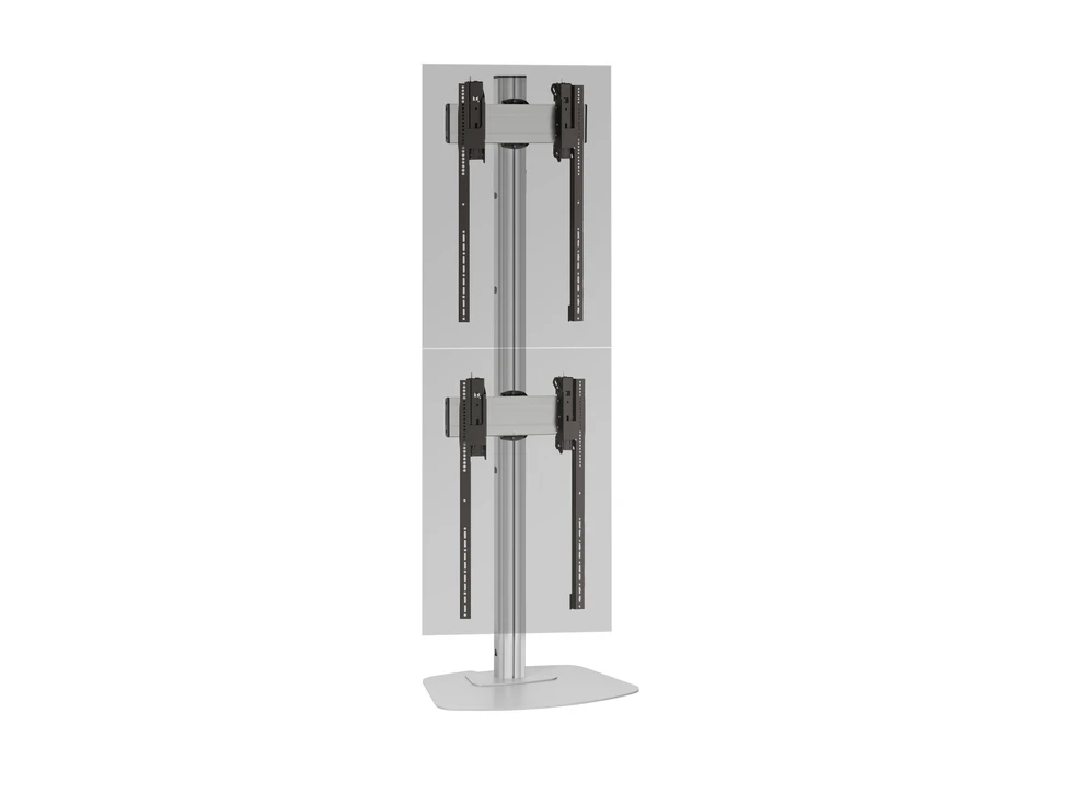 Напольный стационарный стенд для видеостены 2х1 Vogels F2184P S. арт 8796 из дисплеев с диагональю экрана 40-47''. Портретная ориентация. Стандарт VESA от 200x200 до 800x400 мм. Возможна регулировка каждого дисплея в трех плоскостях и перевод в сервисное положение. Наклон +7°/-3°. Высота штанги - 180 см. Предусмотрен скрытый кабель-канал CIS. Допустимая нагрузка - 60 кг. Мах масса одного дисплея - 30 кг. Цвет серебристый