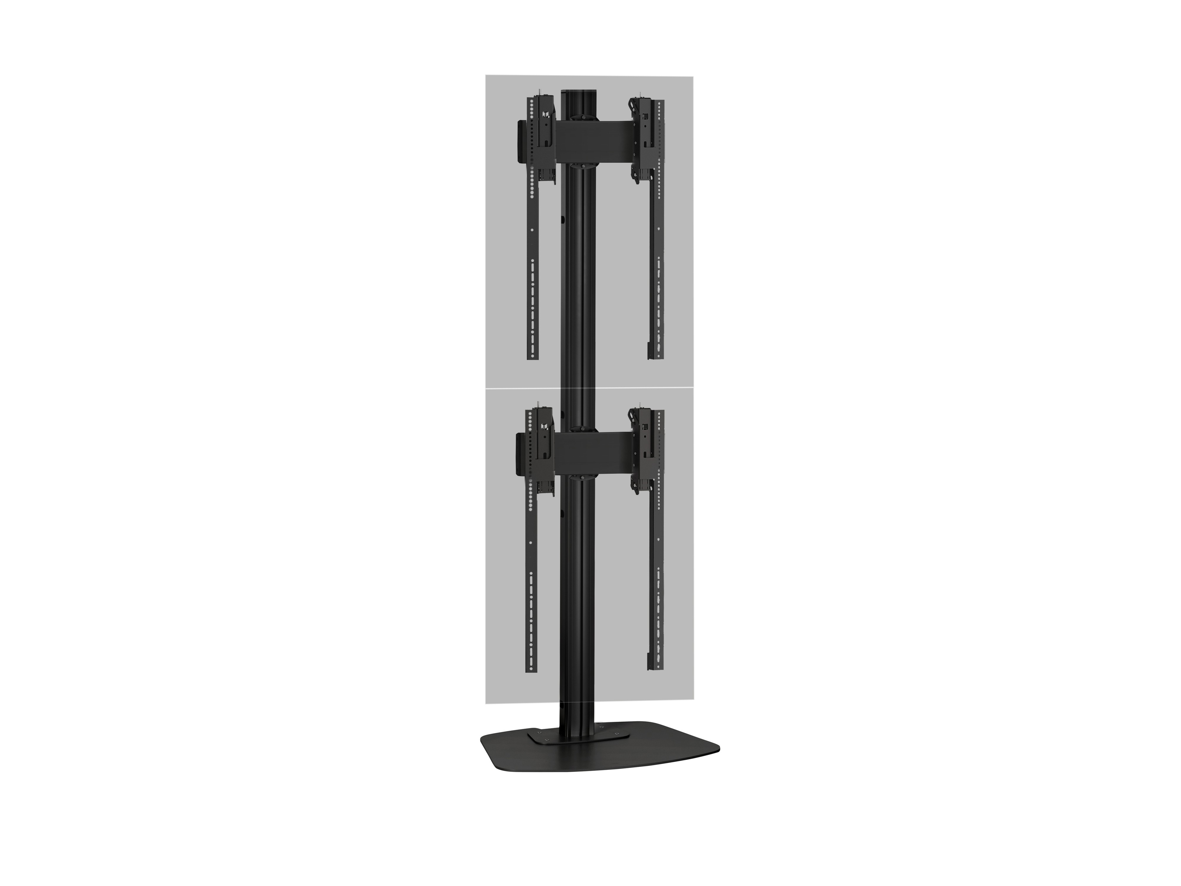 Напольный стационарный стенд для видеостены 2х1 Vogels F2184P. арт 8797 из дисплеев с диагональю экрана 40-47''. Портретная ориентация. Стандарт VESA от 200x200 до 800x400 мм. Возможна регулировка каждого дисплея в трех плоскостях и перевод в сервисное положение. Наклон +7°/-3°. Высота штанги - 180 см. Предусмотрен скрытый кабель-канал CIS. Допустимая нагрузка - 60 кг. Мах масса одного дисплея - 30 кг. Цвет чёрный