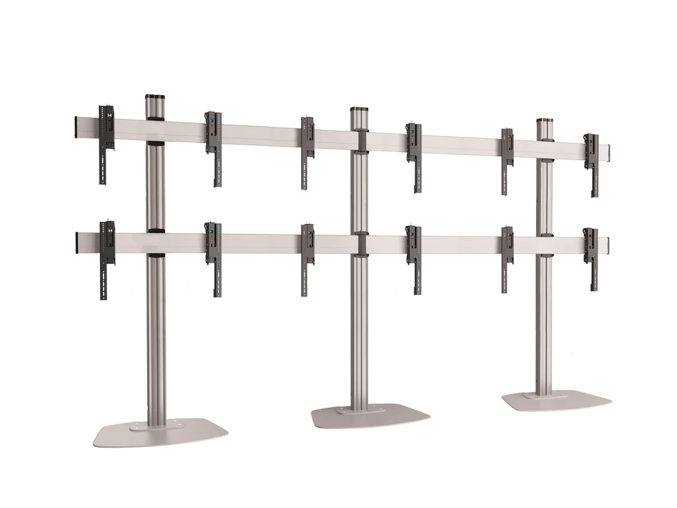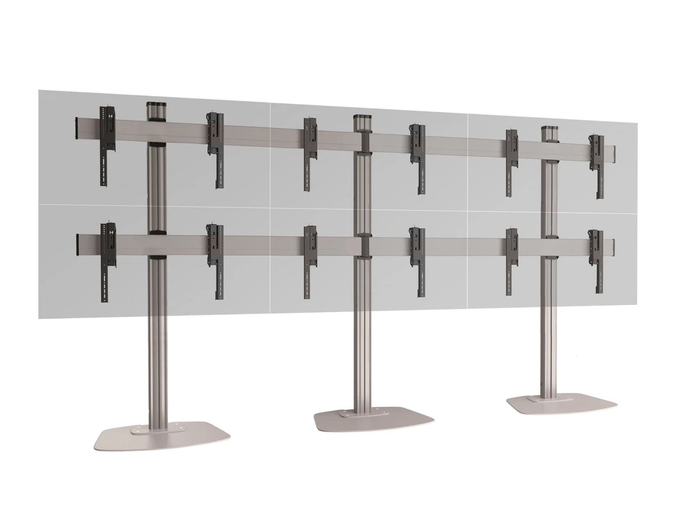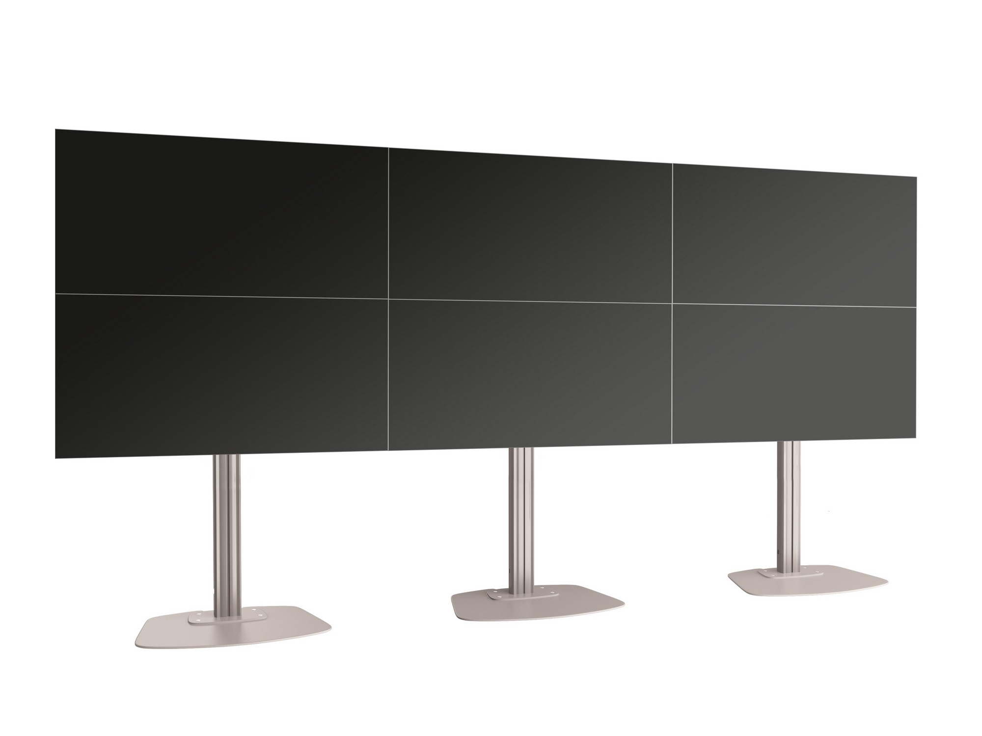Напольный стационарный стенд для видеостены 2х3 Vogels F2384S. арт 8934 из дисплеев с диагональю экрана 50-60''. Альбомная ориентация. Стандарт VESA от 200x200 до 800x400 мм. Возможна регулировка каждого дисплея в трех плоскостях и перевод в сервисное положение. Высота штанги - 200 см. Предусмотрен скрытый кабель-канал CIS. Допустимая нагрузка - 180 кг. Мах масса одного дисплея - 30 кг. Цвет серебристый.