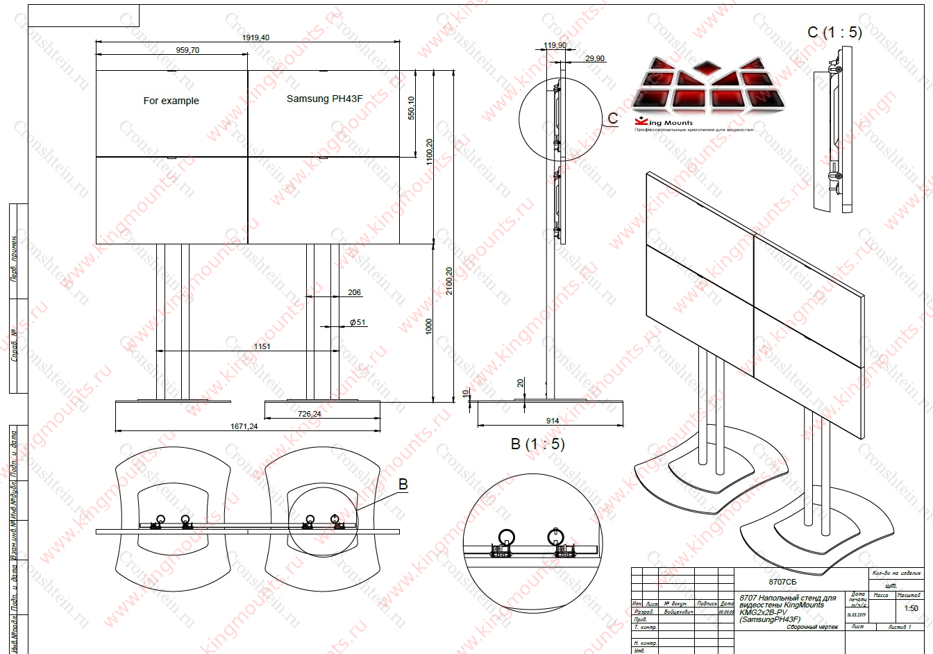 Напольный стенд для видеостены KingMounts KMG2x2B-PV