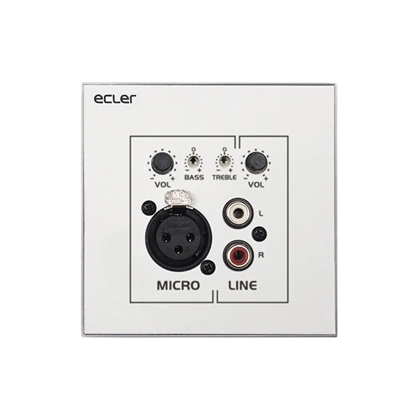 Настенная панель, 2-канальный микшер Line (2xRCA) и Mic (XLR) сигналов, эквализация. Накладная коробка в комплекте. Питание 12 В от eMCONTROL1 или от отдельного бп. Исполнение для Европы.