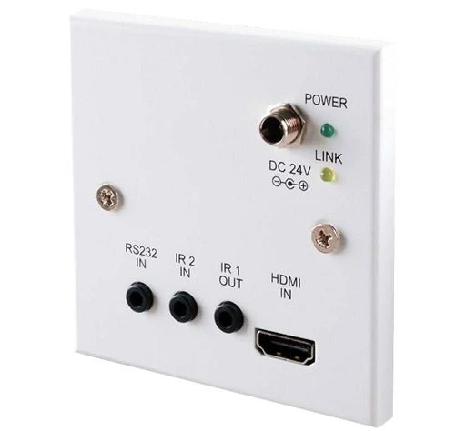 Настенная панель-передатчик сигналов HDMI 1.4 1080p/60 (4Kх2K, 3D) с HDCP и CEC, ИК (2х miniJack 3,5 мм) и RS-232 (miniJack 3,5 мм) в витую пару CAT5e с PoC (Power over Cable), HDBaseT, расстояние передачи до 100 м.