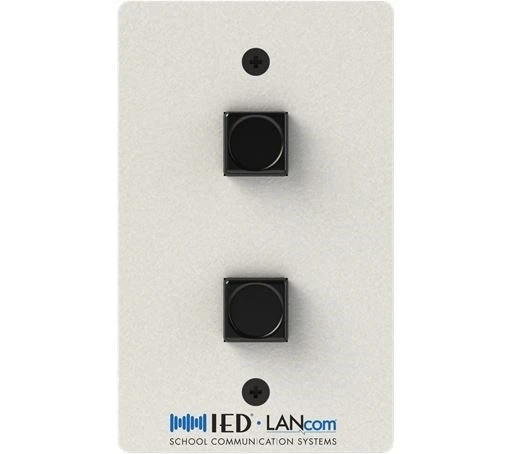 Настенная панель с двумя кнопками вызова для системы оповещения GLOBALCOM, настраиваются на 1 из четырех стандартных функций, вход/выход RJ45, каскадируется, используется с устройствами LC372SR или LC331IC.