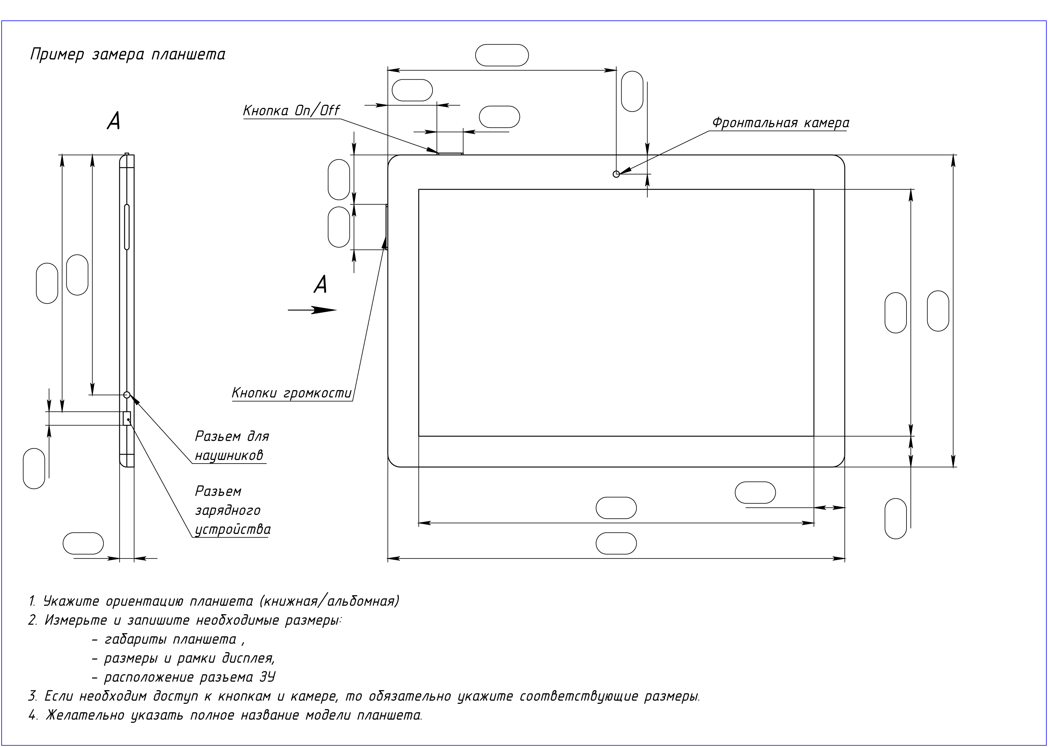 • Ориентация планшета: портретная или альбомная в зависимости от крепления на стене