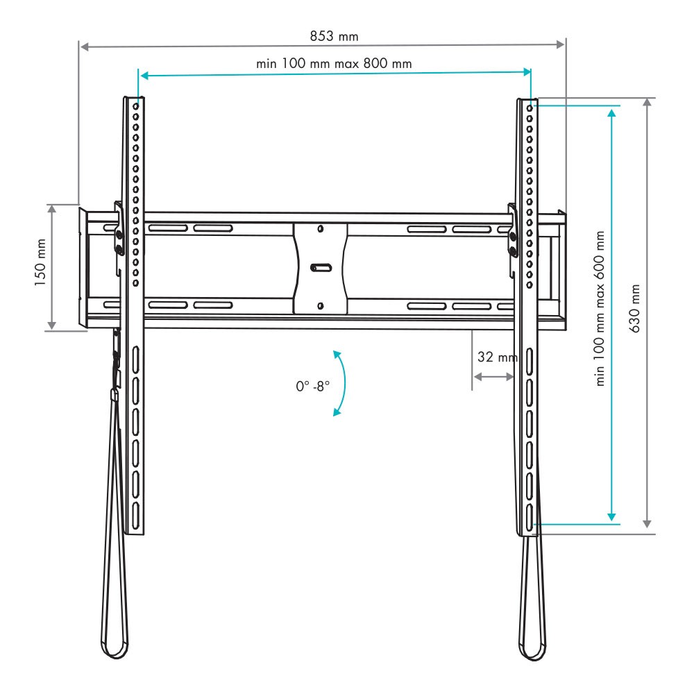 Универсальная система крепления для любого телевизора с посадочными отверстиями от 32 до 600 мм по горизонтали и от 50 мм до 400 мм по вертикали