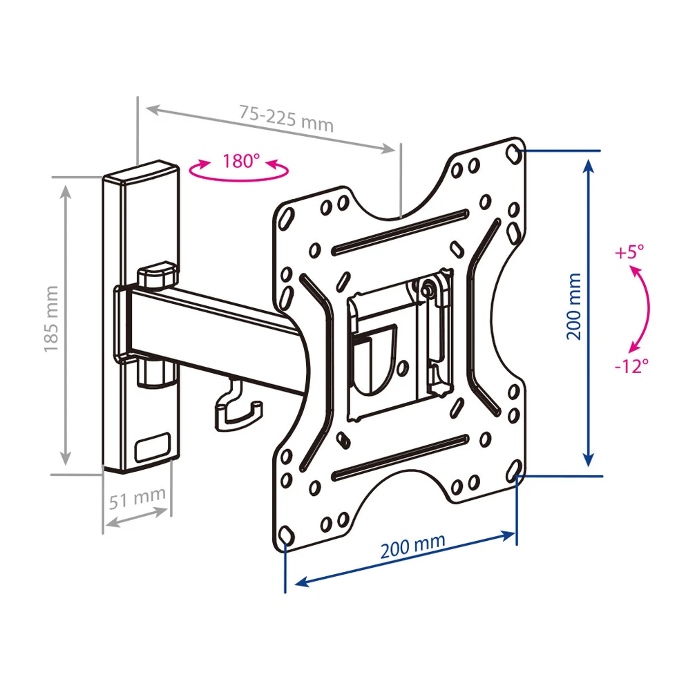 Расстояние от стены (мм):75-225