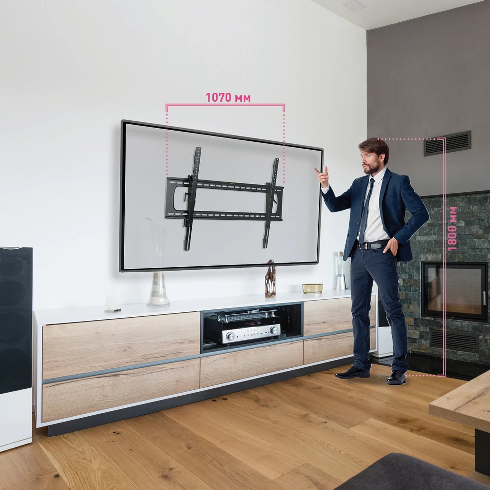 Мощная стальная конструкция с толщиной метала 3 мм, способная выдержать любой ТВ весом до 103 кг.