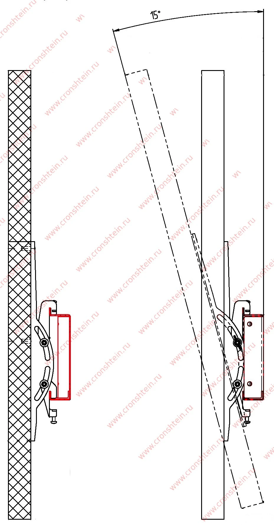• Положение телевизора: Наклонное, регулируемое до 15 градусов